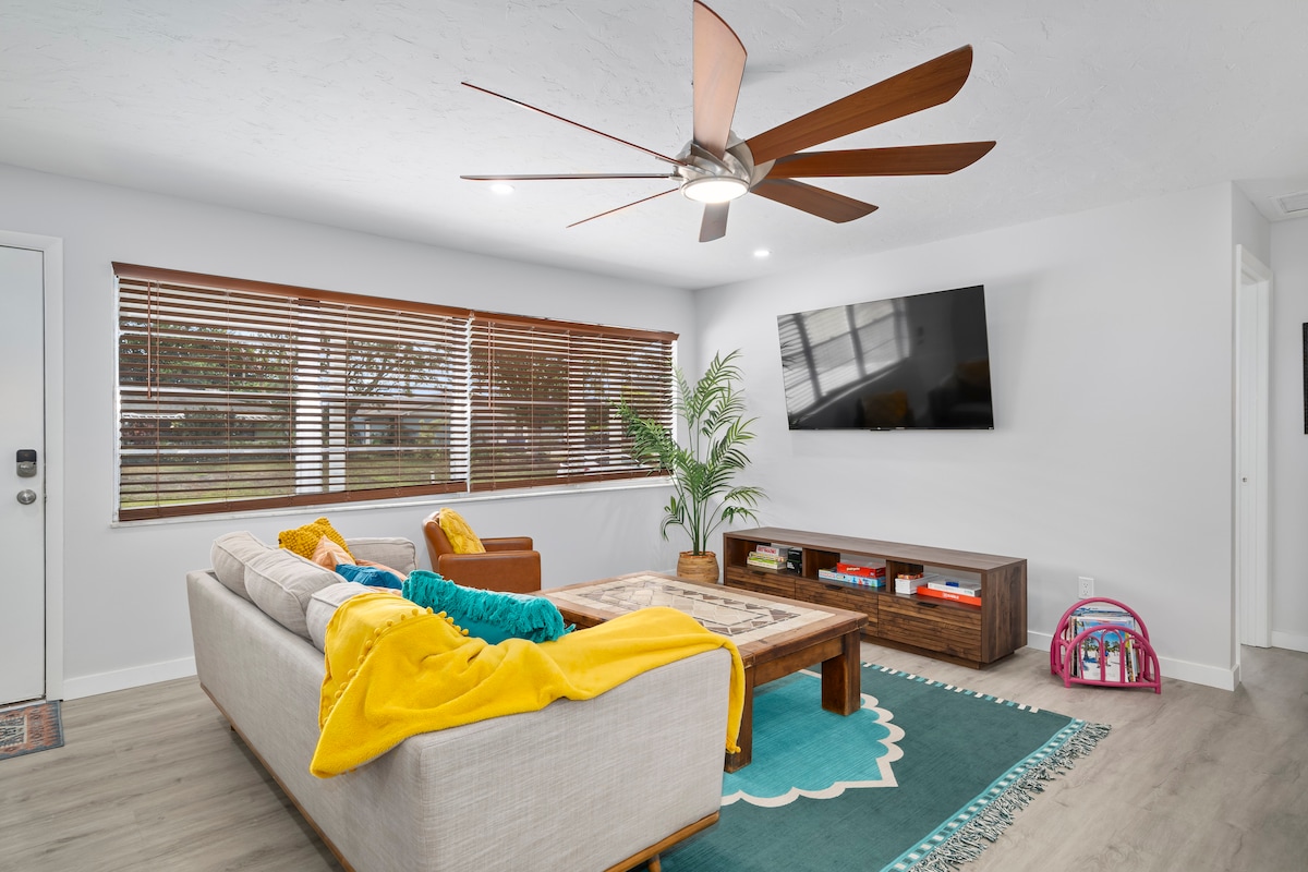 ¡Te damos la bienvenida a tu escapada junto al mar! Preciosa casa reformada que admite mascotas con patio privado vallado, barrio tranquilo cerca de playas y restaurantes frente al mar. Lugar perfecto para que amigos y familias se reúnan. Imagínate: * Disfrutando de horas de diversión en la ENORME piscina climatizada llena de juguetes, flotadores y juegos. * Relajándote cada noche en la suite principal con cama tamaño king * Terminando el día con un cóctel junto a la piscina y una barbacoa. * Tomando una deliciosa taza de café mientras te relajas en el espacioso lanai cubierto. * ¡Y mucho más!