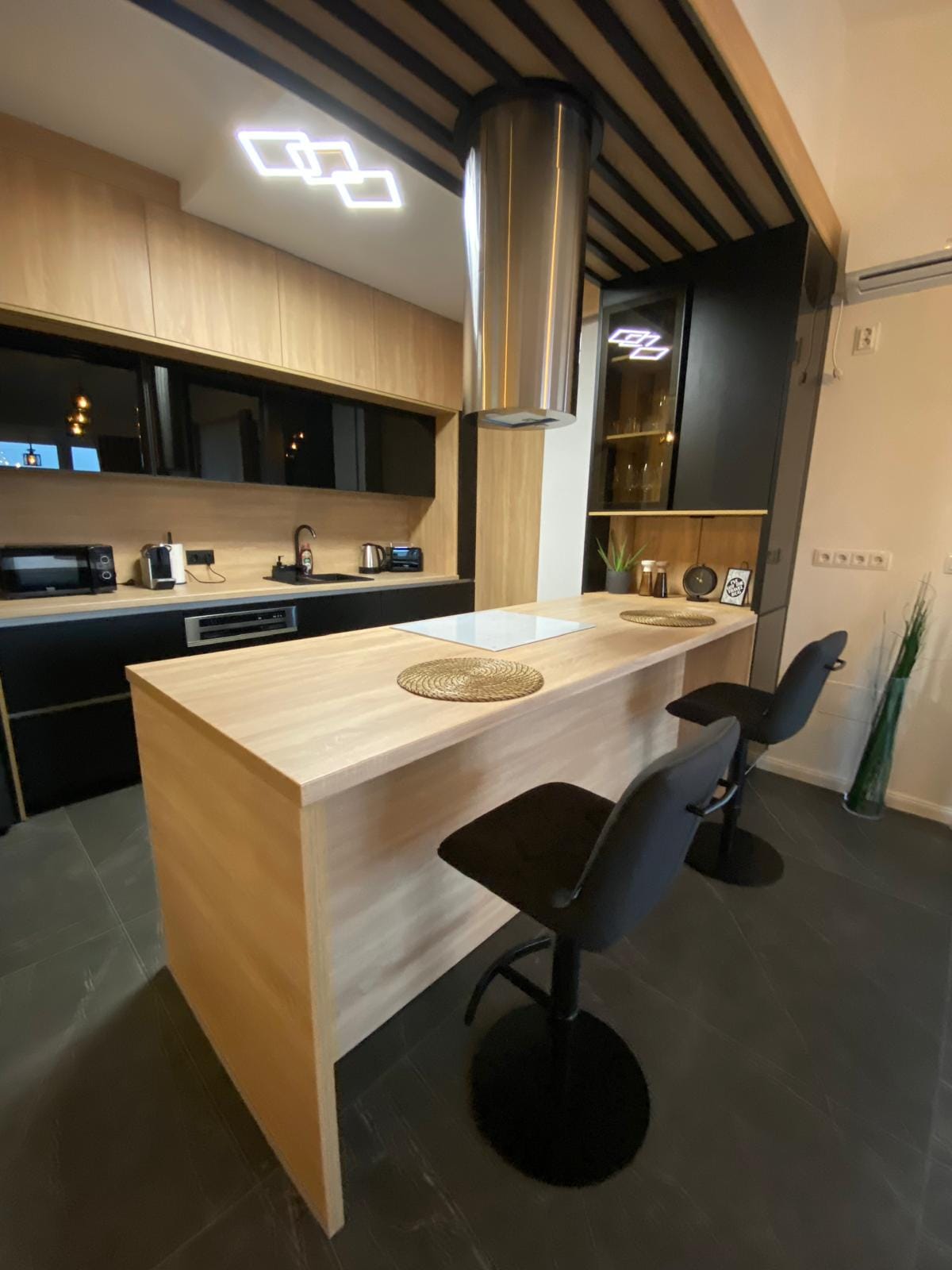 Un apartamento moderno, compuesto por 2 dormitorios, cocina tipo open space, un amplio baño y una terraza con vistas panorámicas a las zonas históricas de ALBA CAROLINA. Está situado en el centro, a 3 minutos a pie de la Ciudadela de Alba Iulia, la Catedral de la Reunificación, el Museo de la Unión, la Plaza de la Ciudadela, etc. Los dormitorios están amueblados con camas dobles y televisores inteligentes. La propiedad cuenta con aparcamiento gratuito, internet wifi, aire acondicionado, TV en cada habitación, cocina totalmente amueblada y equipada.