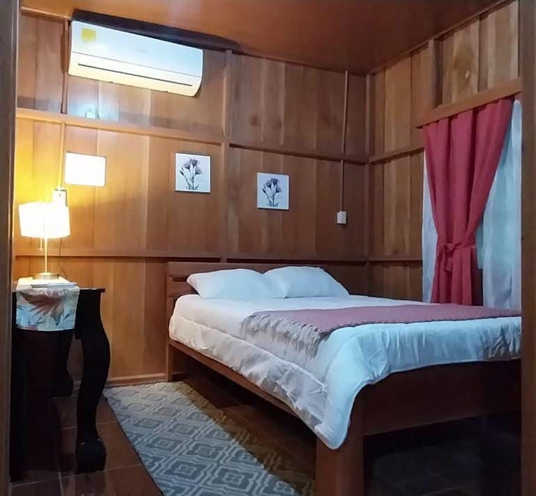 Casa rodeada de vegetación, AC❄️ la propiedad tiene lago, zonas verdes para caminar, un área para realizar teletrabajo en el balcón, tiene área para lavar, cuenta con piscina la cuál es compartida con 2 huéspedes de otro alojamiento, estamos a 15 minutos de la fortuna, para 2 personas, si vienen huéspedes extra deberá informar y tendrá costo de $10 por cada persona, si desea ordenar desayuno $7 por person *Se hacen tour privados en la finca: chocolate, nocturno, baile, clases de comida local.