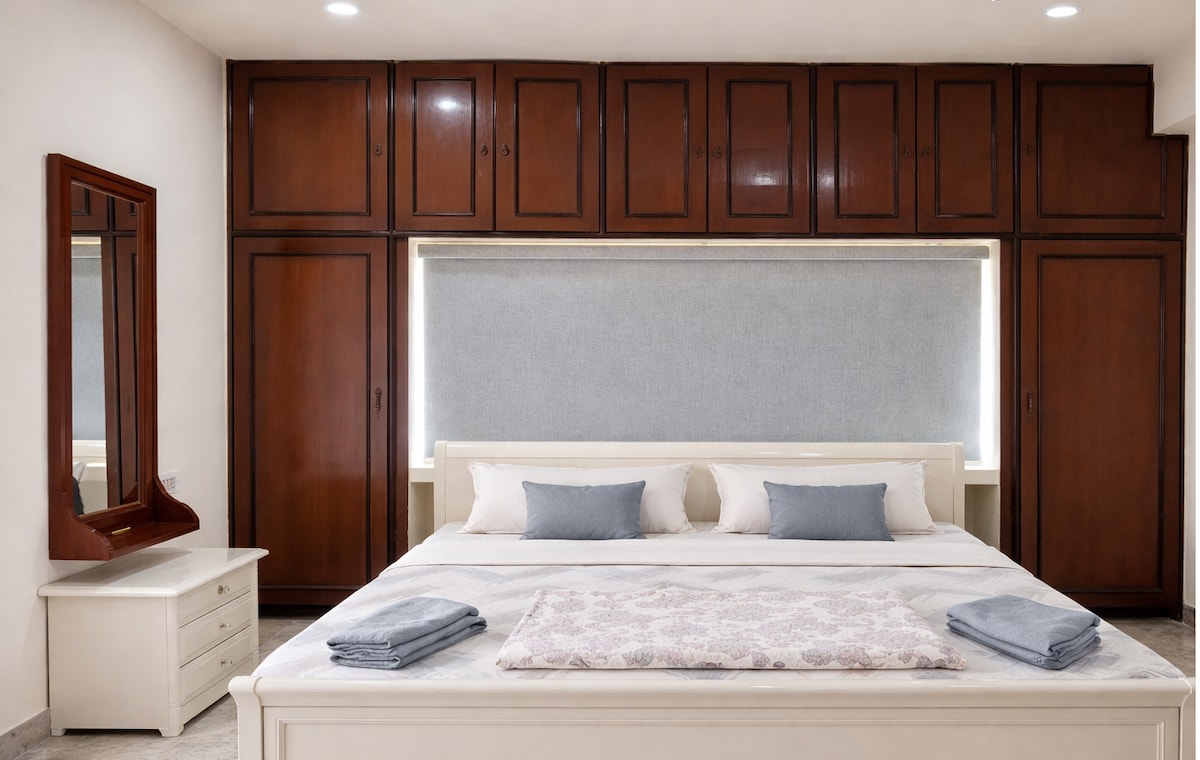 Enjoy a comfortable stay in this new 2BHK apartment with bright, clean AC bedrooms—ideal for families, NRIs, and business travelers. The home offers a full kitchen with RO water, induction stove, utensils, rice cooker, fridge, kettle, high-speed Wi-Fi, geysers, inverter backup, Smart TV and covered parking. Unwind with a RoboTouch premium massage chair. Just 15 minutes from ORR Exit 8, near hospitals, supermarkets, with Swiggy/Zomato in under 10 minutes.