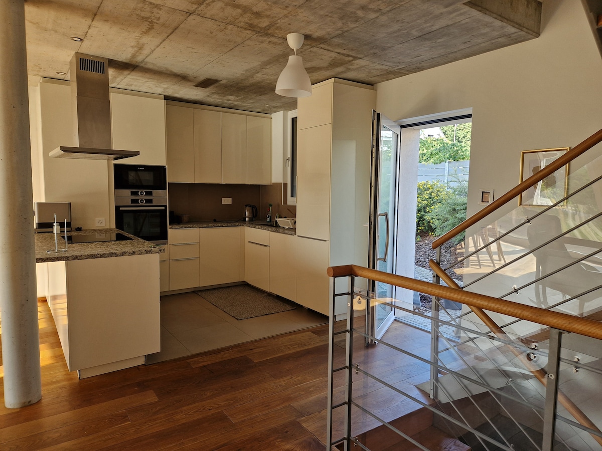 Bienvenido a nuestro acogedor y tranquilo oasis en las alturas de Murten. Nuestra casa está rodeada de zonas verdes, con un gran jardín natural con vistas al lago Murten (ubicada en una ladera). Distancia desde la ciudad de Murten y el lago 15 minutos a pie / desde la estación de tren de Murten 30 minutos