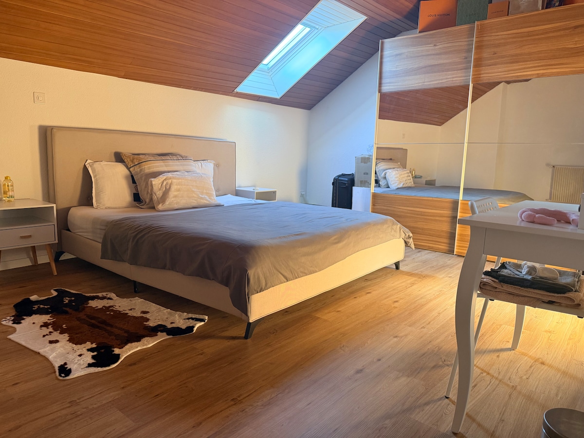 Apartamento luminoso de 130 m² a dos minutos de la estación de tren y a cinco minutos del lago Una habitación King Size con pantalla y una habitación Queen Size Sala de estar con zona de cine y sofá cama de dos plazas Cocina moderna equipada Siemens y comedor para seis Lavadora y zona de fitness dedicada Tarjetas de estacionamiento diarias disponibles a un precio de CHF 7.– para los viajeros que vienen en automóvil.
