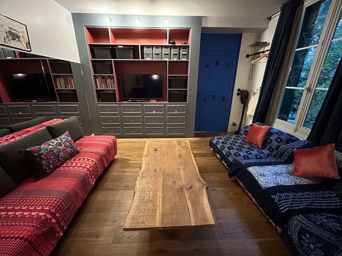 Bienvenido a una encantadora muela de los años 20, donde Sara y yo le ofrecemos un apartamento independiente de unos 35 m2, en un sótano elevado y renovado, para 2 adultos y 1 niño (o 2 adultos). Fácilmente accesible desde el aeropuerto de Orly (10-15 minutos en taxi), nuestra casa se encuentra a 8 minutos a pie de la estación de tren RER de Choisy y a 2 minutos del tranvía T9. Bien insonorizada, con 4 niveles, nuestra muela se encuentra en una zona muy tranquila, y cuenta con un jardín orientado al sur.