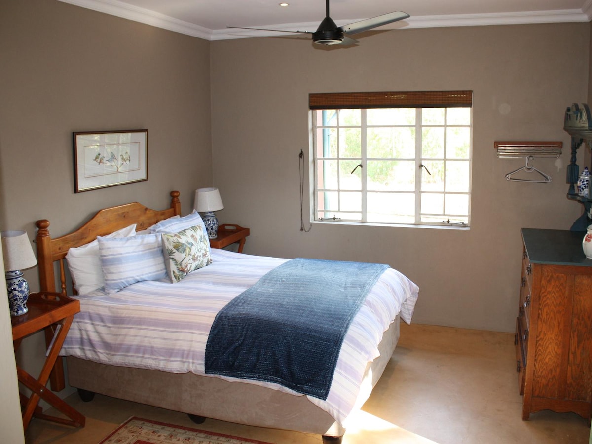 The air-conditioned Chalet is furnished with a king-size bed, a queen-size bed, and 2 single beds, and share bathroom facilities The kitchen is equipped with a microwave, as well as a fridge. A TV with DStv channels, and Wi-Fi access are also available.
