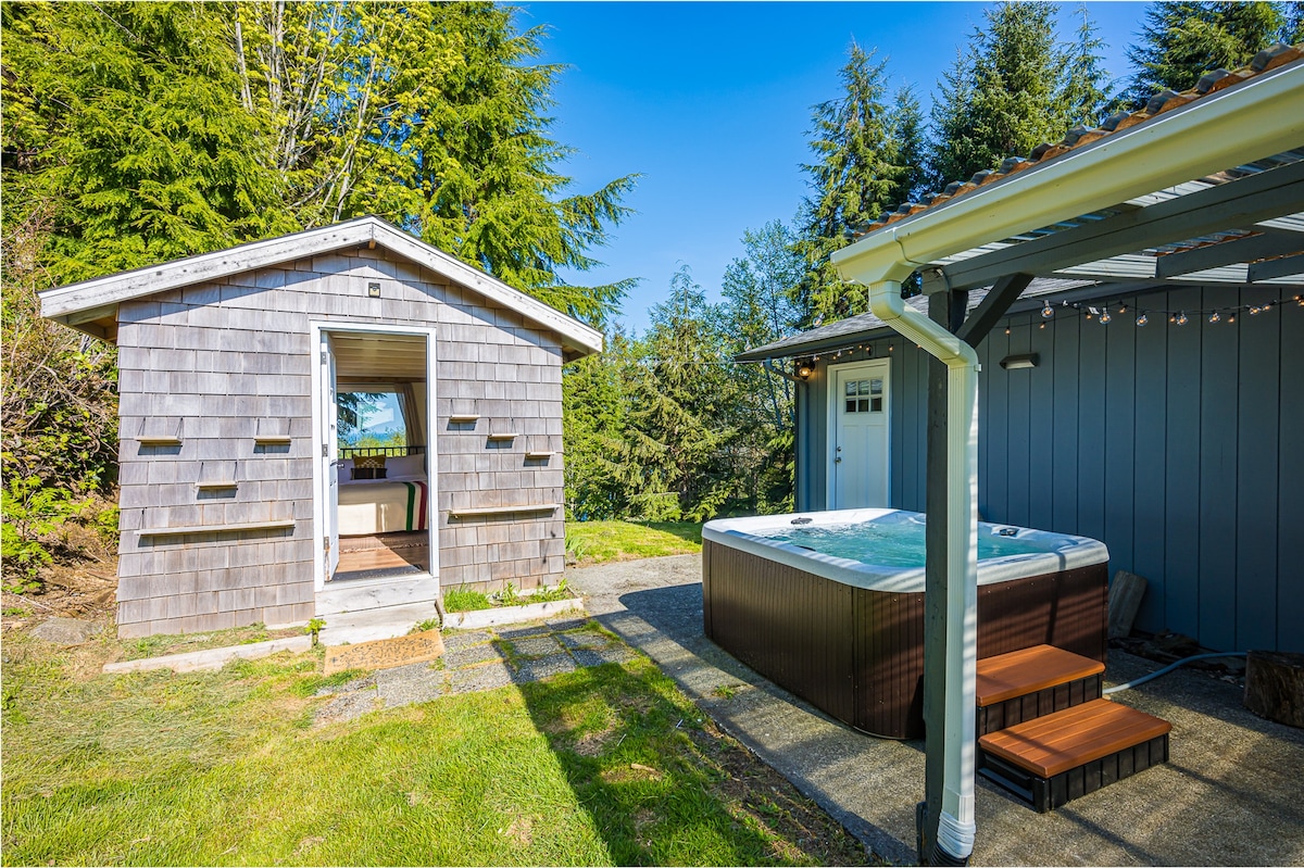 Disfrutá de esta cabaña ecológica recién construida a solo unos minutos de Rialto Beach. Ubicado en un lugar privado en nuestro refugio natural, es un lugar tranquilo y relajante para aterrizar, totalmente equipado para tu estadía. Usala como punto de partida para explorar el extremo oeste del Parque Nacional Olympic o acampá para descansar. Esta minicasa incluye un jacuzzi privado a leña y acceso compartido a nuestra sauna de cedro. ¿Viajas con amigos o familiares? No te alejes: también hay otras opciones de alojamiento únicas en el lugar.