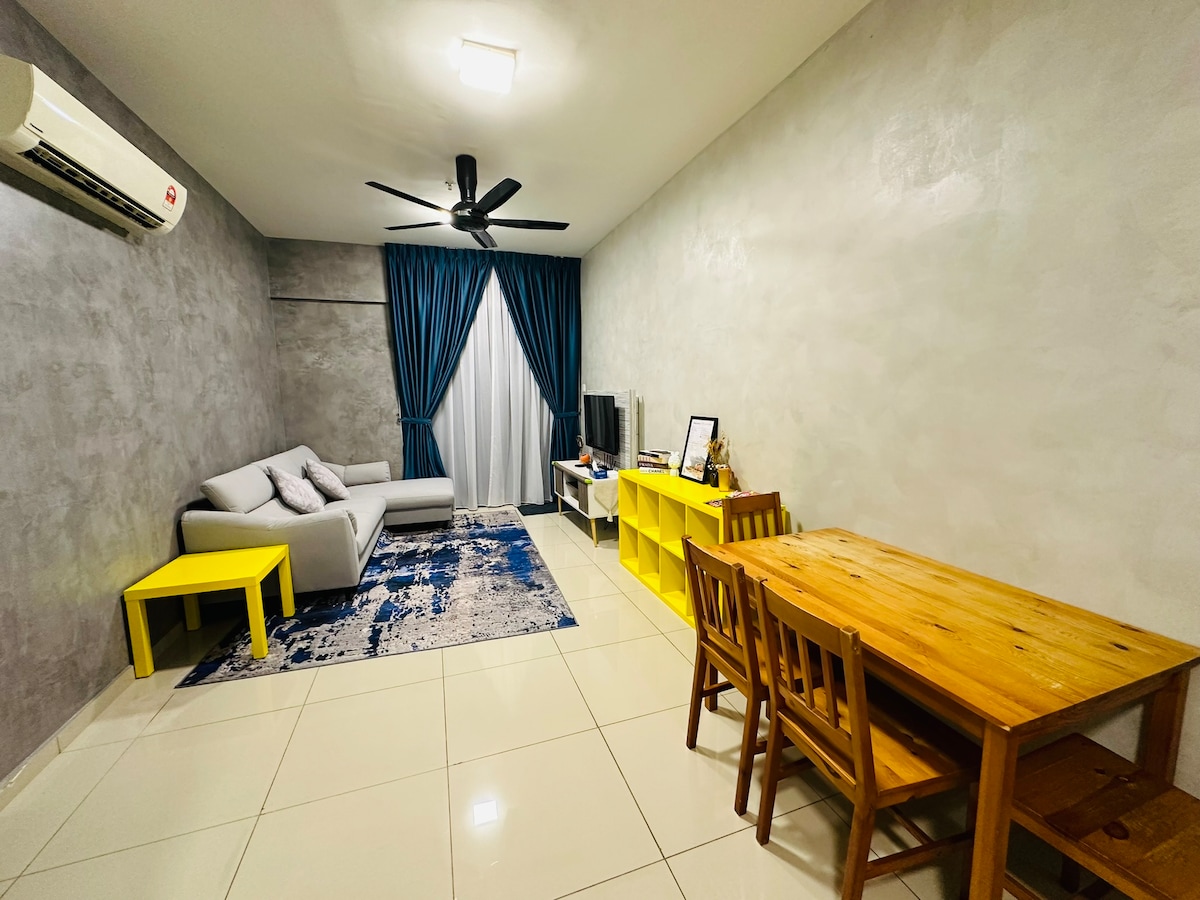 Disfruta de una experiencia elegante en este lugar céntrico, con vistas al centro comercial de i-city. Ofrecemos un alojamiento familiar de hotel de 5 estrellas a un precio asequible. Sin duda, tendrás una experiencia excelente con wifi gratuito de alta velocidad y NETFLIX instalado en karyaSUITE. Nuestro alojamiento se encuentra en el corazón de i-City Shah Alam, cerca de la autopista Federal, UITM, UNISEL, Jakel y el Hospital Shah Alam. Nuestra espaciosa casa de 759 pies cuadrados tiene capacidad para 6 personas cómodamente en 2 dormitorios.