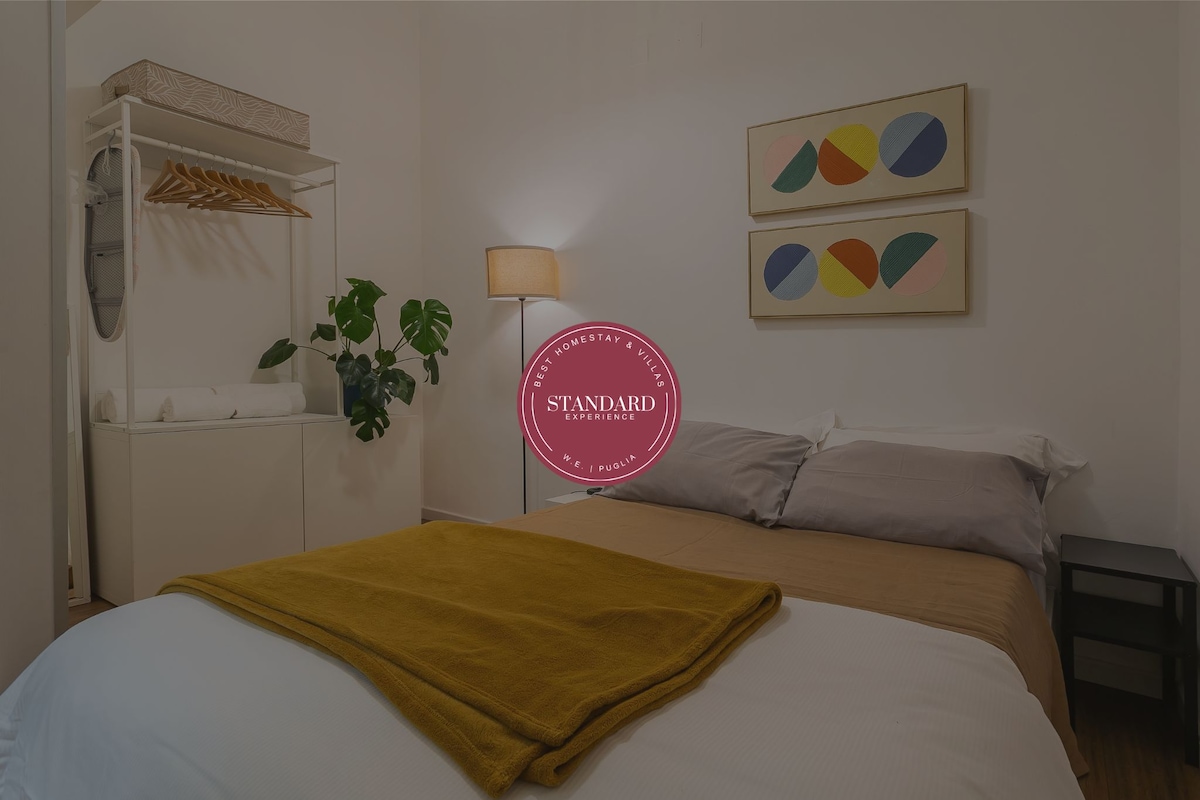 Departamento de 106 metros cuadrados con dos balcones, ideal para familias o grupos. - Dormitorio doble con balcón. - Habitación con 2 camas individuales y balcón de conexión con cocina pequeña. - Amplio y luminoso living con sofá cama, TV inteligente, biblioteca, Wi-Fi - Baño nuevo con ducha amplia. Decoración vintage con toques modernos. Casa céntrica, cerca de todos los servicios y estacionamiento gratuito en las inmediaciones. A solo unos pasos del lugar de nacimiento de Domenico Modugno.