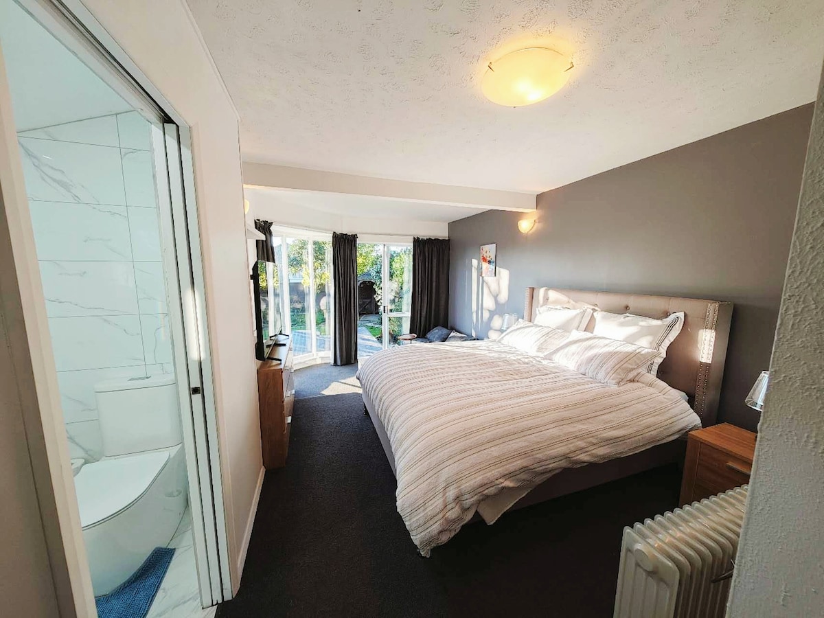 - Registro sin contacto - Desayuno continental gratis - Wifi rápido ilimitado. - Smart TV con Netflix, Freeview, TVNZ+, ThreeNow y Prime Video. - Bomba de calor/aire acondicionado - Estacionamiento fuera de la calle. - A 6 minutos del aeropuerto. Cálido, soleado y privado con baño privado y puertas francesas en un entorno de jardín. A solo 6 minutos del aeropuerto de Christchurch y a 10 minutos del centro de la ciudad. Relájate y disfruta de un generoso desayuno continental, wifi de fibra óptica ilimitado y TV inteligente.
