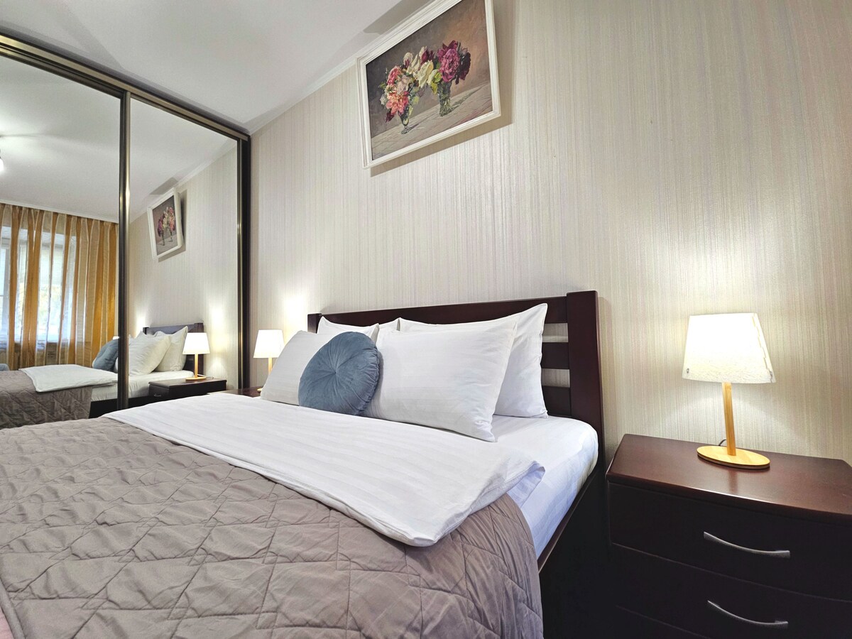 Refinement, delicacy, elegance – these words unintentionally appear in our consciousness when you sea the Beauty like this! Gods’ Residence – no more, no less! Brand new building, author’s design, luxurious furniture, breathtaking view from your window – and all these in the center of Poltava. Wi-Fi internet, air-conditioner, luxurious crockery – ‘golden key ready’ apartment! Therefore, if you really love and respect yourself, there are no more than 2 of you, and you are not an ‘accommodation vandal’, welcome to Olympus! Facilities: - One double bed - Air-conditioner - LCD TV-set + Cable TV - Wi-Fi Internet - Microwave oven - Gas stove - Electric kettle - Refrigerator - Water heater - Washing machine - Ironing-board+ iron - Bath-tube Other: Parking Absolutely stunning apartment - you will remeber your stay in Poltava for sure. And you will be happy to come again and enjoy our hospitality! Welcome, dear Guests and Travellers! if you have any questions please contact me I will help you with your questions to make your stay with us as good as possible.