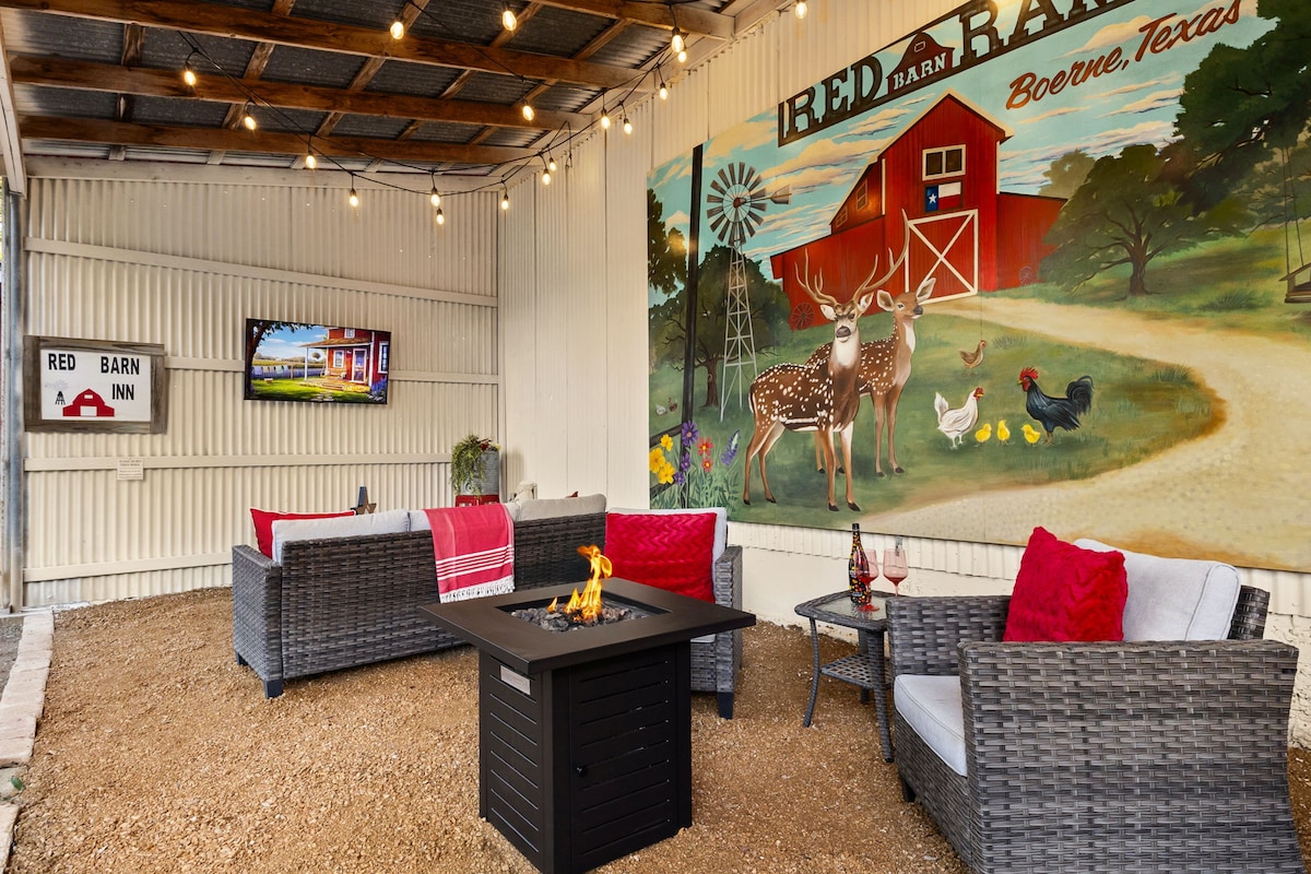 Boutique barn stay on 9 peaceful acres • Just 7 min from downtown Boerne • King suite + cozy living area w/ sofa sleeper • Full kitchen for easy meals • Outdoor games & wide open space • Wildlife under beautiful oak trees • Feed the deer with deer corn provided • Texas-themed charm with luxury touches • Brand-new mural wall by renowned artists—perfect photo spot • Relax under starry skies & explore Boerne’s Hill Country magic NO SMOKING OR VAPING (tobacco or marijuana)