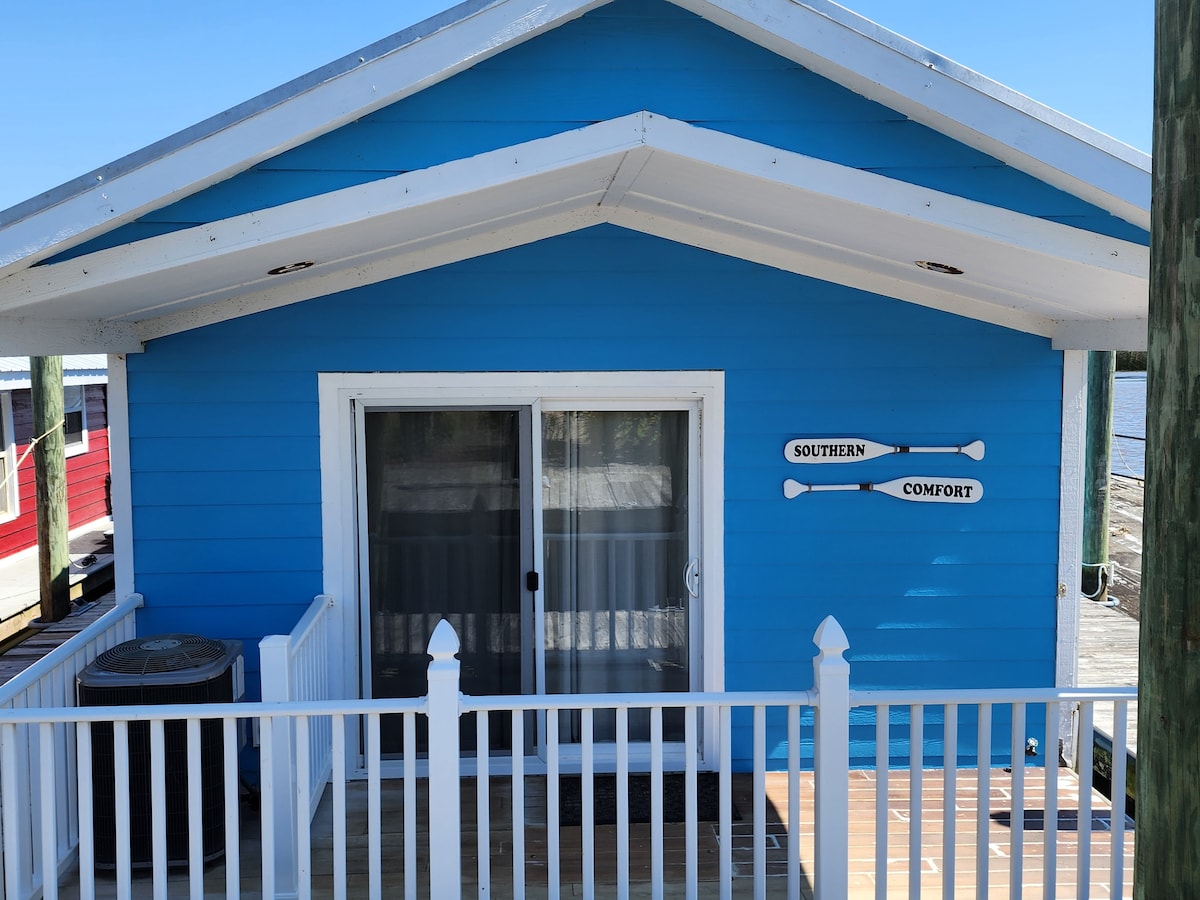 Te damos la bienvenida a FLOATING COTTAGE... Imagina alojarte en una pequeña casa de campo, suavemente flotando en el hermoso río St. Johns en Sanford, Florida. ¡Perfecto para el distanciamiento social! Desinfectada entre huéspedes. Registro sin contacto. Floating Cottage ofrece un espacio mágico para relajarse, refrescarse y explorar. Relájate en el porche delantero; disfruta de la cálida brisa mientras observas la actividad del puerto deportivo y la abundancia de la naturaleza. Disfruta de la comodidad tranquila de la pequeña casa totalmente equipada.