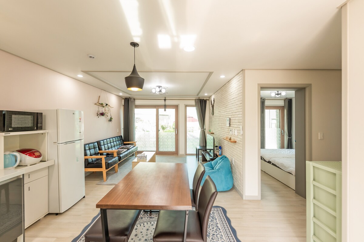 Solo se pueden alojar hasta 5 personas❤, incluidos bebés menores de 12 meses ¡Un alojamiento para sanar lleno de sonidos de pájaros, sonidos del viento y sonidos de la naturaleza! Toda la❤ casa unifamiliar + amplio césped + campo de tangerinas Solo para uso exclusivo de nuestra familia ❤ Estructura: 2 habitaciones (habitación A: 1 cama queen de baja altura + habitación B: 1 cama queen) + 2 baños sala de estar cocina ❤ Experiencia de recolección de cítricos gratuita (disponible solo de finales de octubre a enero) - Gratis hasta 5 kg por equipo Raquetas de❤ bádminton, balones de fútbol y pelotas de béisbol disponibles 15 minutos en coche❤ desde el aeropuerto de Jeju El ● pago con tarjeta solo es posible con una tarjeta combinada para uso en el extranjero En caso de error en el pago, póngase en contacto con el Centro de Atención al Cliente de Airbnb <Número de registro de alojamiento rural: No. 2020-1199> ❤ Barbacoa al aire libre (solo disponible de marzo a noviembre) - 5 personas: 20 000 wones / 6-9 personas: 30 000 wones (por uso) - Herramientas como tijeras, pinzas y soplete de carbón proporcionados - Cliente: Por favor, compre carne, verduras, etc. y disfrute ♡Hueco: 20,000 wones por vez -Leña y antorcha incluidas ❤ Check-in desde las 4 pm ~ Check-out hasta las 11 am No se❤ admiten mascotas/No se permite la entrada a nadie más que a las personas reservadas (CCTV al aire libre) Alquiler gratuito de❤ piscinas pequeñas: julio-agosto/uso de piscinas al aire libre
