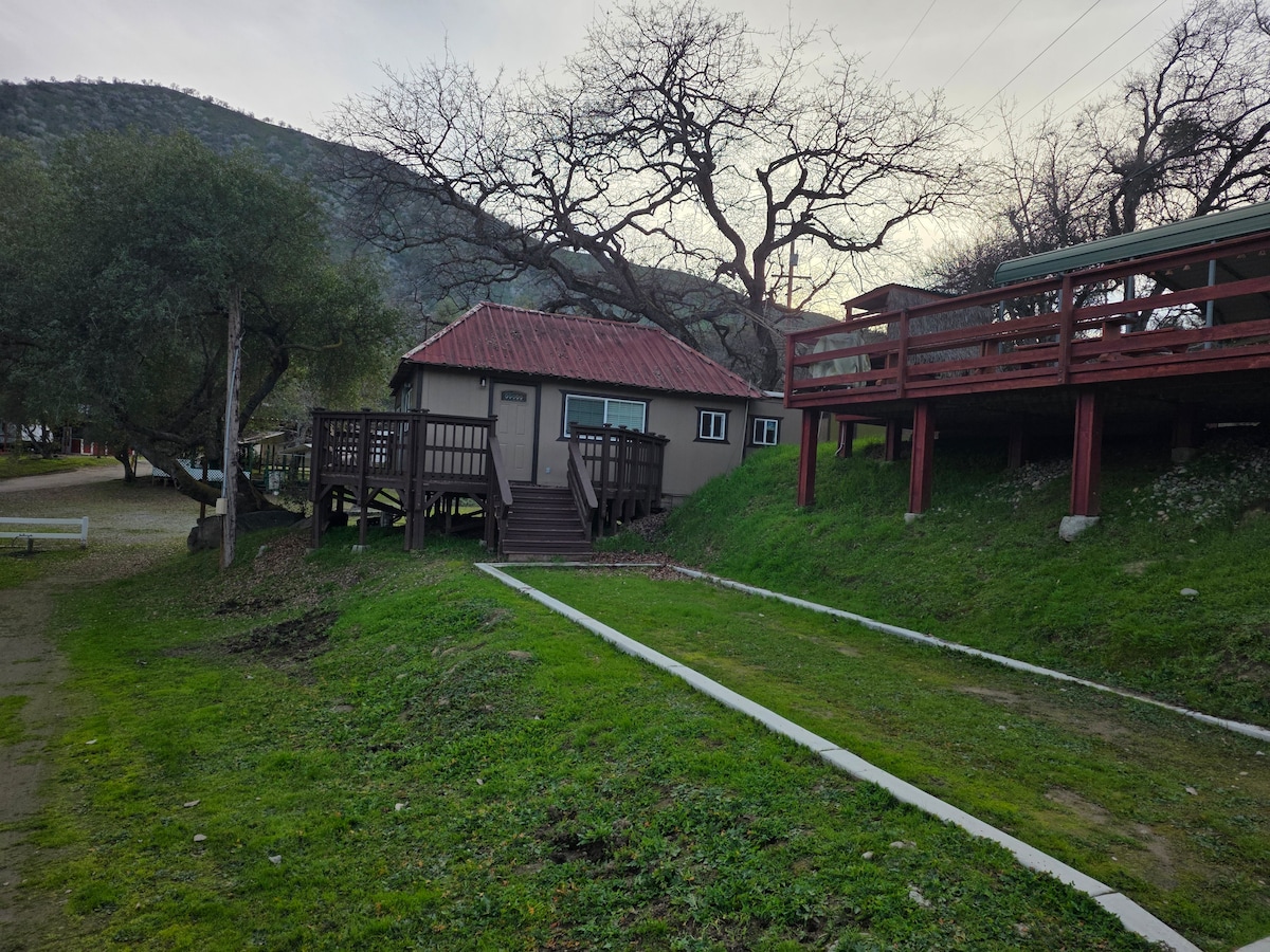 Paradise Ranch Inn “off the grid” 50-acre riverfront resort in 3Rivers California . Cada casa está totalmente amueblada y equipada con una cocina americana completa, cama, ducha y lavadero japonés, todas las casas tienen su propia infusión privada de bañera de hidromasaje con infusión de ozono, 2 saunas y 1 1/4 de milla de río privado. Cocina: freidora de aire, parrilla de pizza ooni al aire libre, parrilla de hibachi, una parrilla de 2 quemadores de gas. NO SE PERMITEN HUÉSPEDES MENORES DE 18 AÑOS EN LA PROPIEDAD. LA RESERVACIÓN ESTARÁ SUJETA A CANCELACIÓN O TARIFA DE 500 $/NOCHE POR NIÑO.