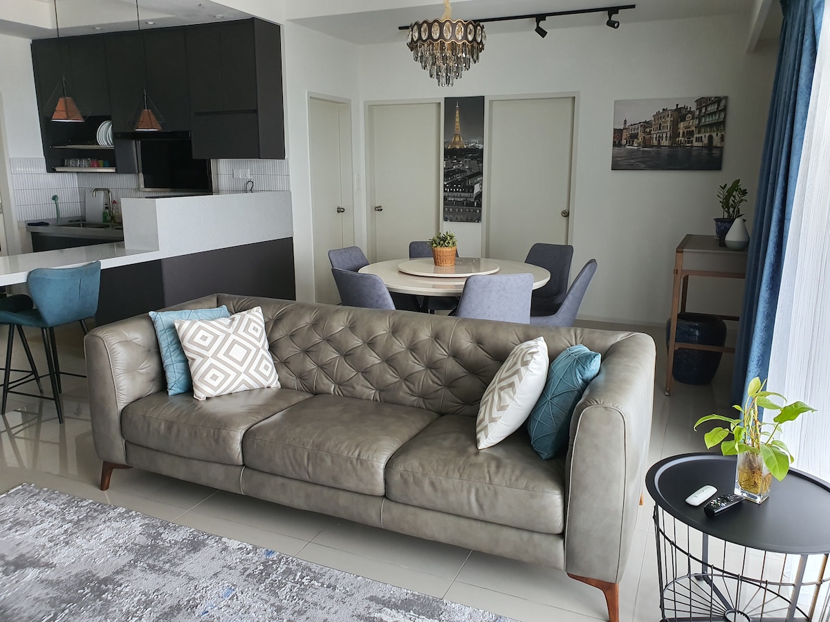Amplio e íntimo. Como esta es mi quinta unidad, dimos un paso adelante y alquilamos una suite de 1 dormitorio con una acogedora sala de estar y un comedor. Con una vista majestuosa de Cyberjaya desde tu ventana, nada es más fantástico que esto. Perfecto para estancias largas, ya sea por placer o por negocios. Estamos conectados con Tamarind Square a través de un paseo sombreado con todas las necesidades que necesites durante tu estancia.