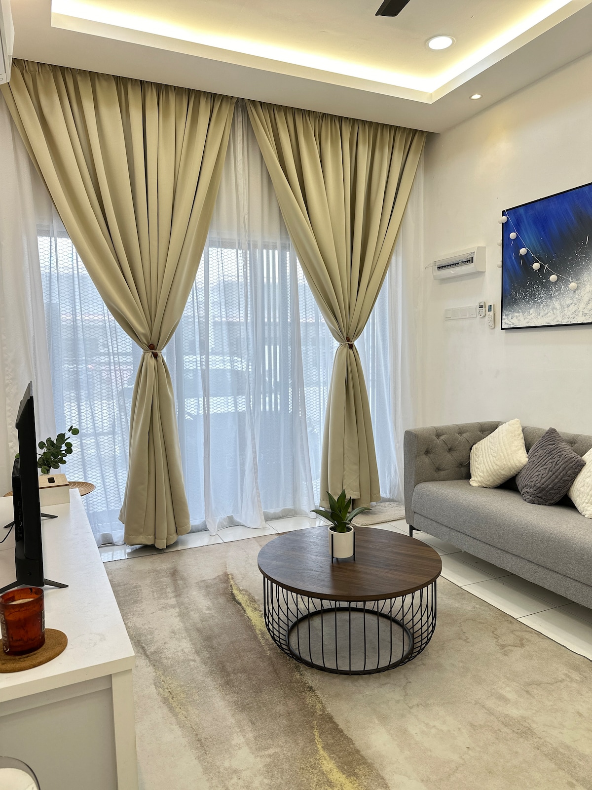✨ Te damos la bienvenida a Kuntum Homestay @ Bandar Seri Iskandar ✨ Una estadía acogedora, estética y apta para musulmanes que ofrece comodidad, privacidad y tranquilidad. Ubicado a 3 minutos de UTP, UiTM y restaurantes populares (KFC, McD, A&W, Family Mart, Chagee, Lotus, 7-Eleven). A 20 minutos de Batu Gajah, a 40 minutos de Ipoh, a 55 minutos de Lumut. Características: cama queen, dos camas individuales, sala de estar, baño y cocina pequeña (no se puede cocinar). Unidad del quinto piso con vista nocturna. Check-in sin anfitrión a las 15:00, check-out a las 12:00.