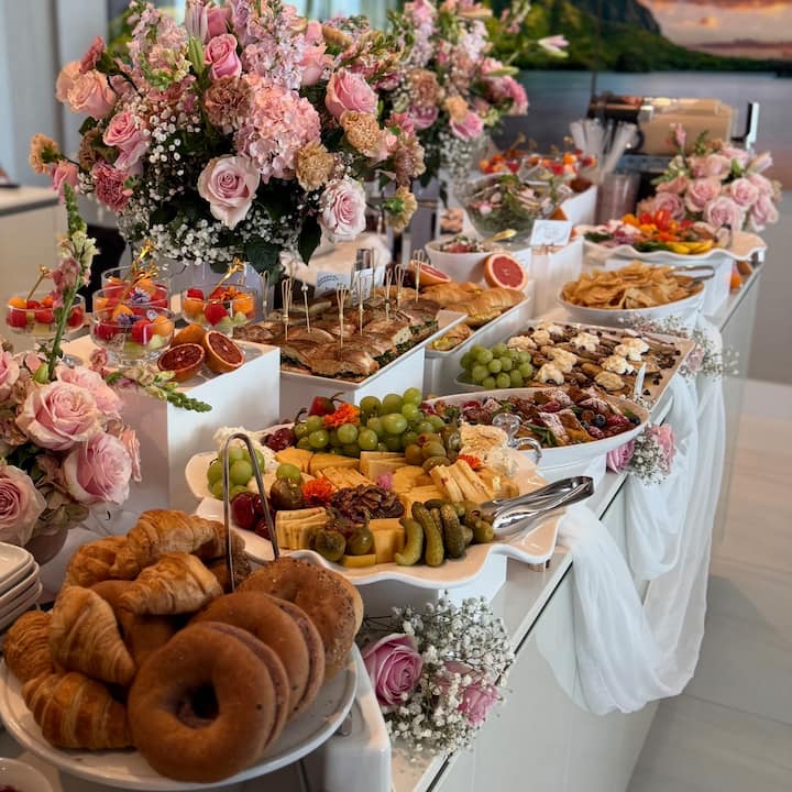 Esto incluye nuestro servicio de buffet y la preparación con platos, cubiertos, toallas para invitados, servilletas, servilletas de lino, limpieza, el chef y un asistente.