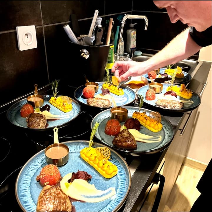 20 años de experiencia en el arte culinario, de los cuales más de 12 como jefe de cocina en Francia y Suiza.