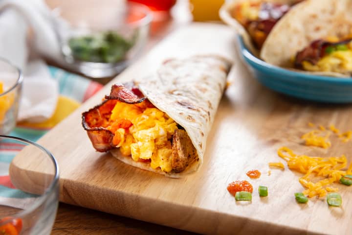 Todo lo que podrías desear de un desayuno en Texas, envuelto en tortillas recién hechas.