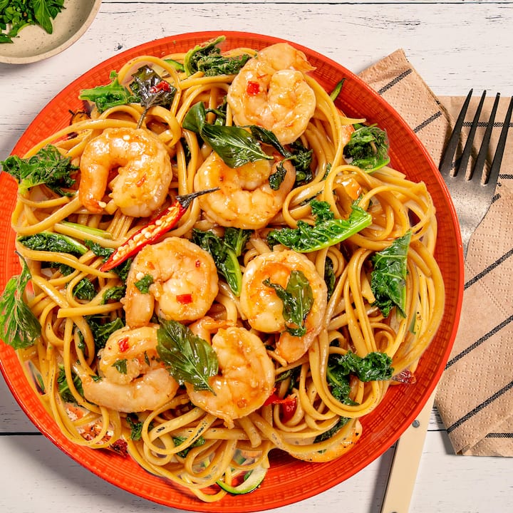Linguini de langostinos al estilo tailandés