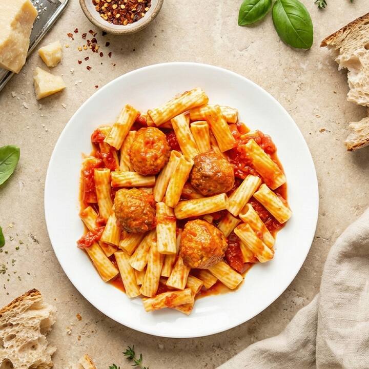 La comodidad acogedora te espera con el exclusivo Mom's Sunday Rigatoni de John DeLucie (salsa tradicional de domingo con albóndigas saladas, auténtica marinara y salchicha de cerdo italiana picante) y Penne con salsa rosa picante (una mezcla de salsa marinara roja y salsa alfredo blanca, pimienta roja picante triturada, queso Grana Padano salado y albahaca fresca). Incluye 2 de cada comida.