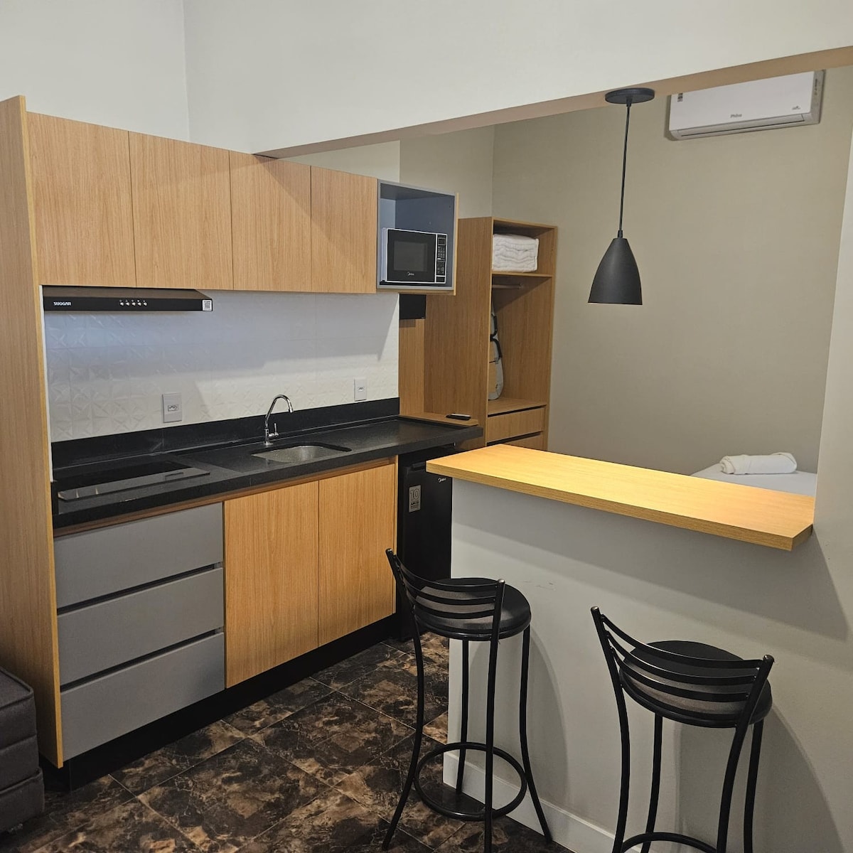 🏠Kitnet acogedor y bien ubicado en Bauru: Ya sea por trabajo, estudio u ocio, ¡encontrá aquí el lugar perfecto para tu estadía! Nuestro estudio ofrece comodidad y tranquilidad, con una ubicación estratégica. Junto a la lavandería de autoservicio Lavô. El espacio cuenta con: 🛏 2 camas individuales (si eliges ser una pareja, comunícate con el anfitrión); 🍳Cocina equipada con minibar, microondas, cocina y utensilios para facilitar tu día a día; 📺TV inteligente; 📶Wifi