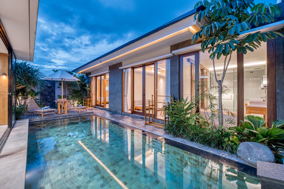 ¡Una lujosa villa privada de 1 dormitorio ubicada en el corazón de Pererenan! Relájate en privado con tu propia piscina y muebles elegantes. Estamos a poca distancia a pie de todos los cafés. No hay mejor ubicación en el moderno barrio de Pererenan, que también está a 5 minutos en coche del corazón de Canggu y a 800 metros de la playa. La villa cuenta con una cocina totalmente equipada, cocina de gas, cafetera espresso Delonghi, TV de 43 pulgadas (Netflix gratuito), aire acondicionado frío, una enorme bañera y tu propia piscina privada.
