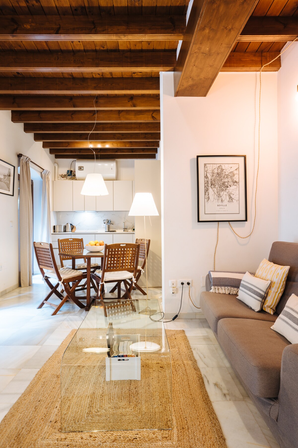 Si alguna vez quisiste experimentar lo que es vivir en el corazón de una de las ciudades más románticas e históricas de Europa, esta es tu oportunidad. Nuestro apartamento combina la comodidad moderna con el diseño tradicional y ofrece todo lo necesario para que tu estancia en Sevilla sea perfecta. La ubicación no podría ser más céntrica (a 50 metros de la plaza de Alfalfa). Se puede llegar a pie a los principales lugares de interés en pocos minutos, todas las cosas buenas de la vida (restaurantes, bares, tiendas, etc.) están justo en la puerta.
