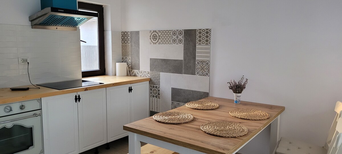 Apartamento espacioso y fresco, totalmente reformado, ideal para la relajación. Se ubica en una casa de ladrillo de adobe tradicional que alberga dos departamentos separados. En el otro departamento, es posible que nosotros, los propietarios, estemos presentes y disponibles para ofrecer asistencia si es necesario. La ubicación se encuentra en una zona tranquila y aislada del pueblo de Sfântu Gheorghe, y las visitas ocasionales de animales domésticos deambulando libremente añaden un encanto especial a tu experiencia.