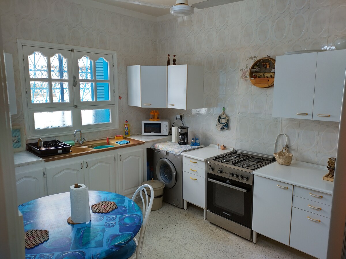 Appartement charment aux cœur de Sfax, à cité Ennassiria, juste à côté de la médina de Sfax et de la mosqué "Sidi Lakhmi". Il comporte un salon élégant, une cuisine bien équipée avec un séchoir donnant sur la rue Ennassiria, deux chambres avec rangements; une avec un lit double et l'autre avec deux lits séparés et enfin, une salle de bain avec baignoire.