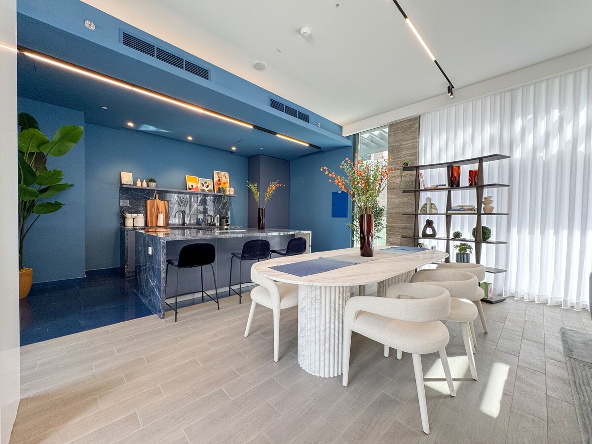Disfrutá de la elegancia y la comodidad en nuestro moderno departamento estudio con una gran terraza en el centro de Dubái. Con vista al Canal de agua de Dubái y a poca distancia a pie del centro comercial Dubai Mall y el Burj Khalifa, es la base perfecta para tu estadía. En el interior, disfrutá de una cama tamaño king, cocina totalmente equipada, wifi gratis, TV inteligente y estacionamiento gratuito. Ya sea que viajes por negocios o por placer, nuestro departamento combina estilo, comodidad y ubicación para una experiencia inolvidable en Dubái.