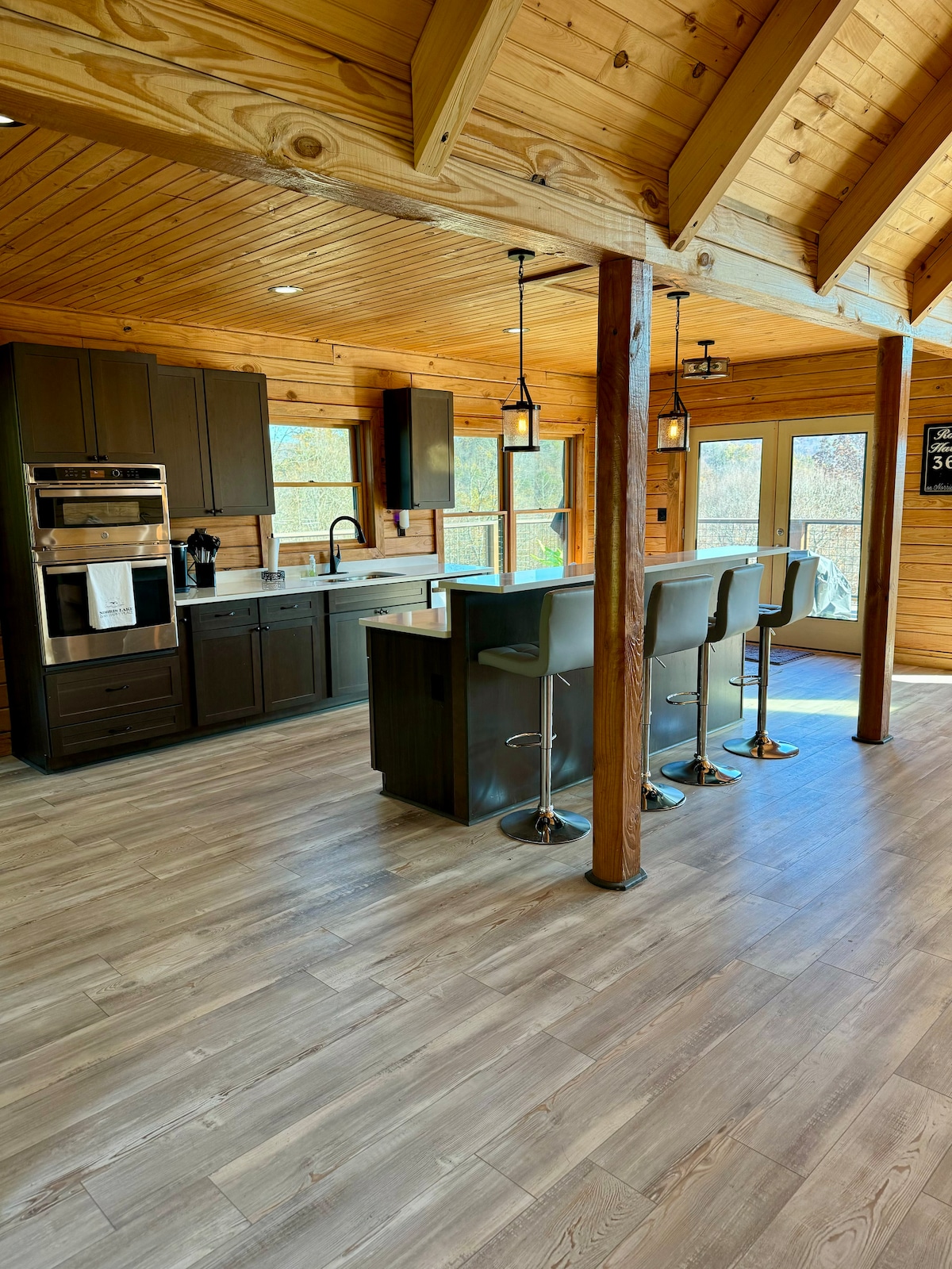 Escape to peaceful serenity at Herons Hideout, a modern cabin with overlooking Norris Lake in New Tazewell, Tennessee. Surrounded by mountains and nature, it’s the perfect getaway! The open-concept layout includes a fully equipped kitchen, cozy living area, quiet study/workspace and spacious deck. Entertainment options abound: 9 TVs, Xbox, Multi Cade arcade, board games, and a game shed with cornhole and outdoor games. Family-friendly touches include a Pack ’n Play, high chair, and baby gate.