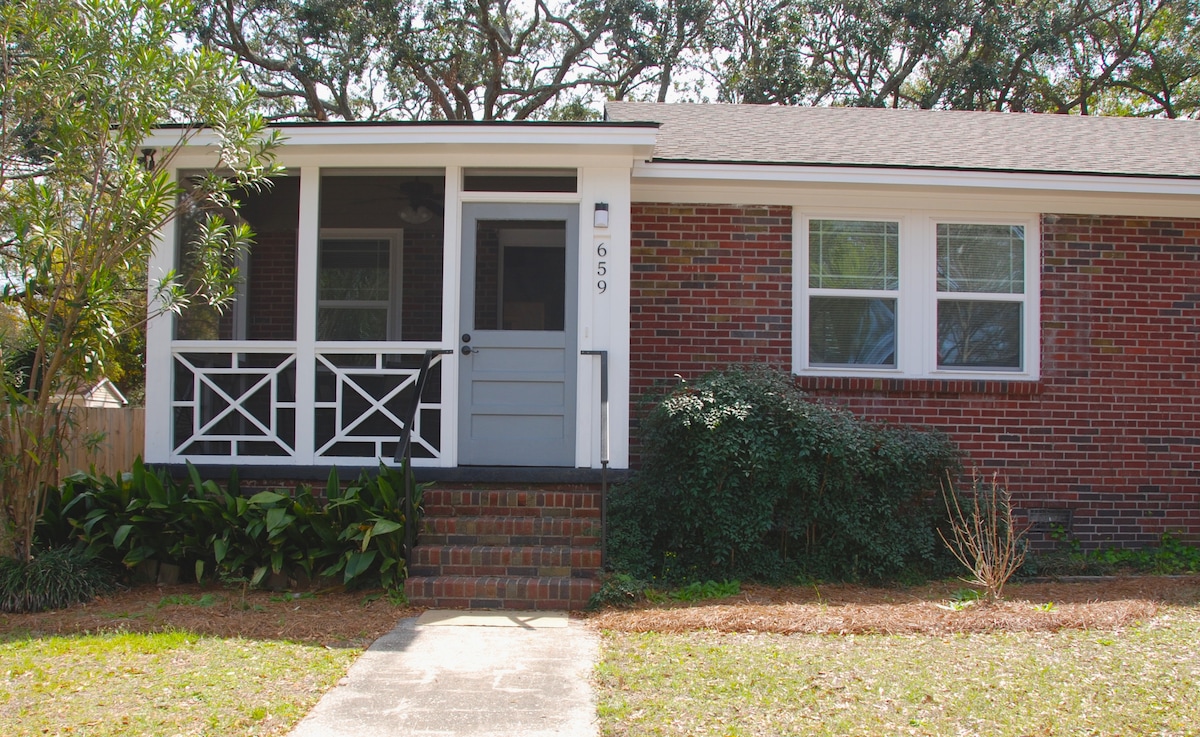 Disfrutá de una casa de huéspedes renovada y con estilo en Charleston. Una escapada ideal para parejas (duermen dos cómodamente), cuenta con una cocina pequeña (heladera, lavavajillas y cafetera), áreas de estar y dormitorio separadas, un baño completo y un espacio al aire libre. Tiene una ubicación céntrica en un tranquilo monte Agradable vecindario, a 6 millas de las playas de Isle of Palms y Sullivan 's Island y a 5 millas del centro de Charleston. Mount Pleasant Permiso STR ST260014 Licencia comercial MP n.º 20126985