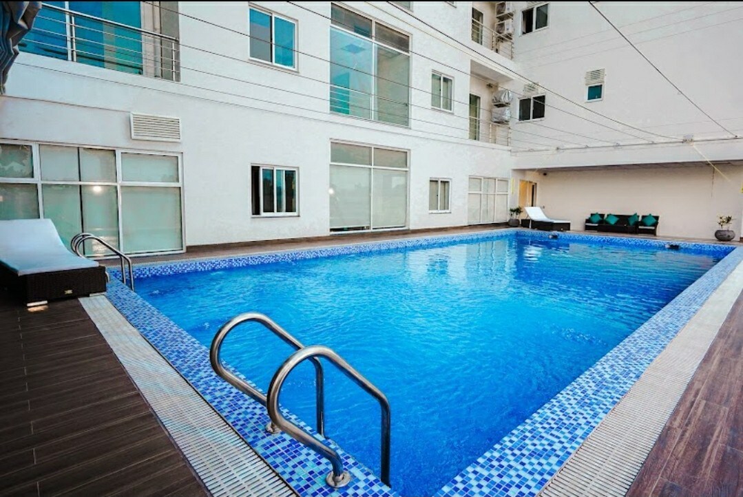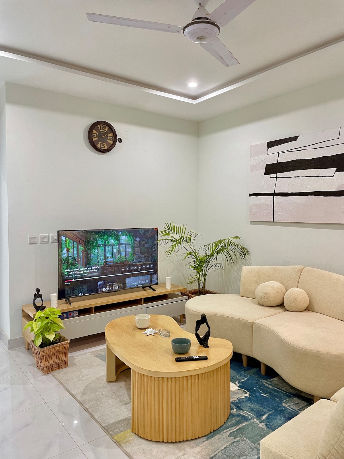 Experience a designer crafted apartment built for comfort and style. Located in a peaceful, secure area, it features a private terrace with beautiful views, a plush bed, 55 inch TV with Netflix and elegant lighting. The fully equipped kitchen includes a German stove, big fridge to store your snacks , kettle and LG washer. A unique monarch modern theme, mural wallpaper and premium décor create a perfect space to relax and enjoy your stay