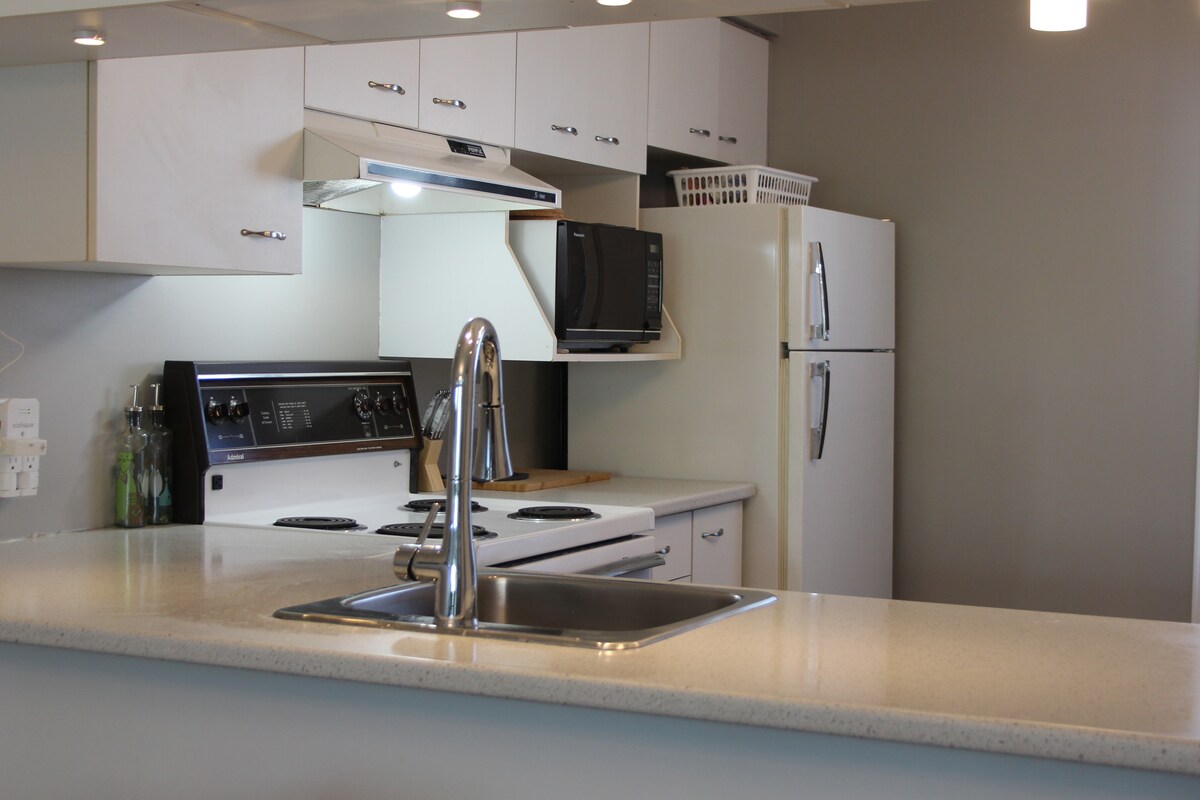 L'appartement est à deux pas du centre-ville et tous les services sont accessibles à pied: restaurants, cafés, boutiques, boulangeries, épiceries, Marché de la Gare, musées, bibliothèque, cinéma, studios de yoga, salle de fitness, patinoire et piscine extérieures, terrains de tennis... Le logement se trouve au rez-de-chaussée d'un duplex bien entretenu avec stationnement à l'arrière. Idéal pour découvrir Sherbrooke et la région de l'Estrie ou pour un séjour d'études ou d'affaires.