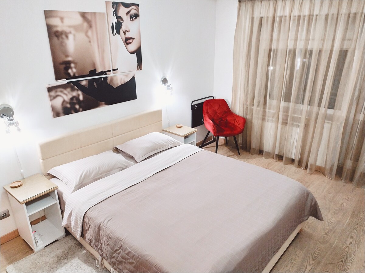Moderno, luminoso y acogedor apartamento ubicado en el distrito del Gobierno, a 5 minutos del parque Mariinsky, cafeterías, restaurantes y a 1,5 km de la plaza de la Independencia. El apartamento tiene todo lo necesario para una vida cómoda: internet wifi de alta velocidad y TV por cable, cama tamaño queen, lugar de trabajo cómodo, chimenea, cocina moderna totalmente equipada con nevera, lavavajillas, microondas, muebles de diseño, lavadora, acondicionador y balcón. Perfecto para vacaciones o viaje de negocios.
