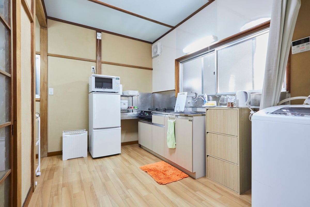 Casa de huéspedes «Konohana» Amplio apartamento・ privado (100 ㎡) Habitación de tatami (camas futón), sofá cama, 2 camas individuales - Capacidad para 7 personas Habitaciones ・sin barreras, fácil acceso para sillas de ruedas. Perfecto para familias y grupos grandes. Hay un・ Seven-Eleven (tienda de comestibles) delante de la casa de huéspedes y Hotto Motto (tienda de bento para llevar) al lado. Hay muchos restaurantes, bares y supermercados por aquí, los supermercados están abiertos hasta altas horas de la noche. · Los utensilios de・ cocina están incluidos, aptos para estancias largas.
