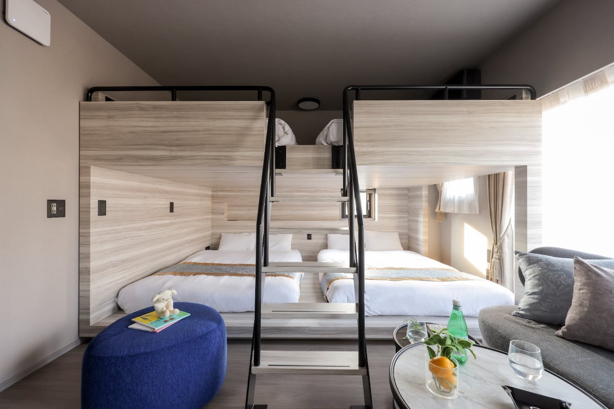 Es conveniente para toda la familia ir a cualquier lugar en este lugar céntrico. Dos camas tamaño king en la habitación, adecuadas para familias y amistades El piso es cómodo y el espacio es privado.Apto para un máximo de 5 personas. La cocina abierta está totalmente equipada con cocina de inducción, ollas y platos, si quieres comer comidas caseras, la cocina japonesa sencilla no es un problema El bar está conectado con el espacio de estar y comedor, ya sea para un café por la mañana o una cena, todo está en orden. El lavabo está diseñado con un baño separado, para que puedas quedarte con algunas personas a tu propio ritmo Disfrutar de un equipo de música con Bluetooth, escuchar música y tomar un baño caliente por la noche en Japón es el momento más relajante del viaje. Hay un proyector en la habitación, por lo que podés conectar fácilmente la plataforma de streaming digital de uso común. Lavarropas, purificador de aire, plancha y armario espacioso, lo que necesites, estamos todos listos El espacio es ideal para que una persona trabaje tranquilamente en el bar o se quede con amigos o familiares durante unos días. Sentite como en casa, con todas las comodidades.