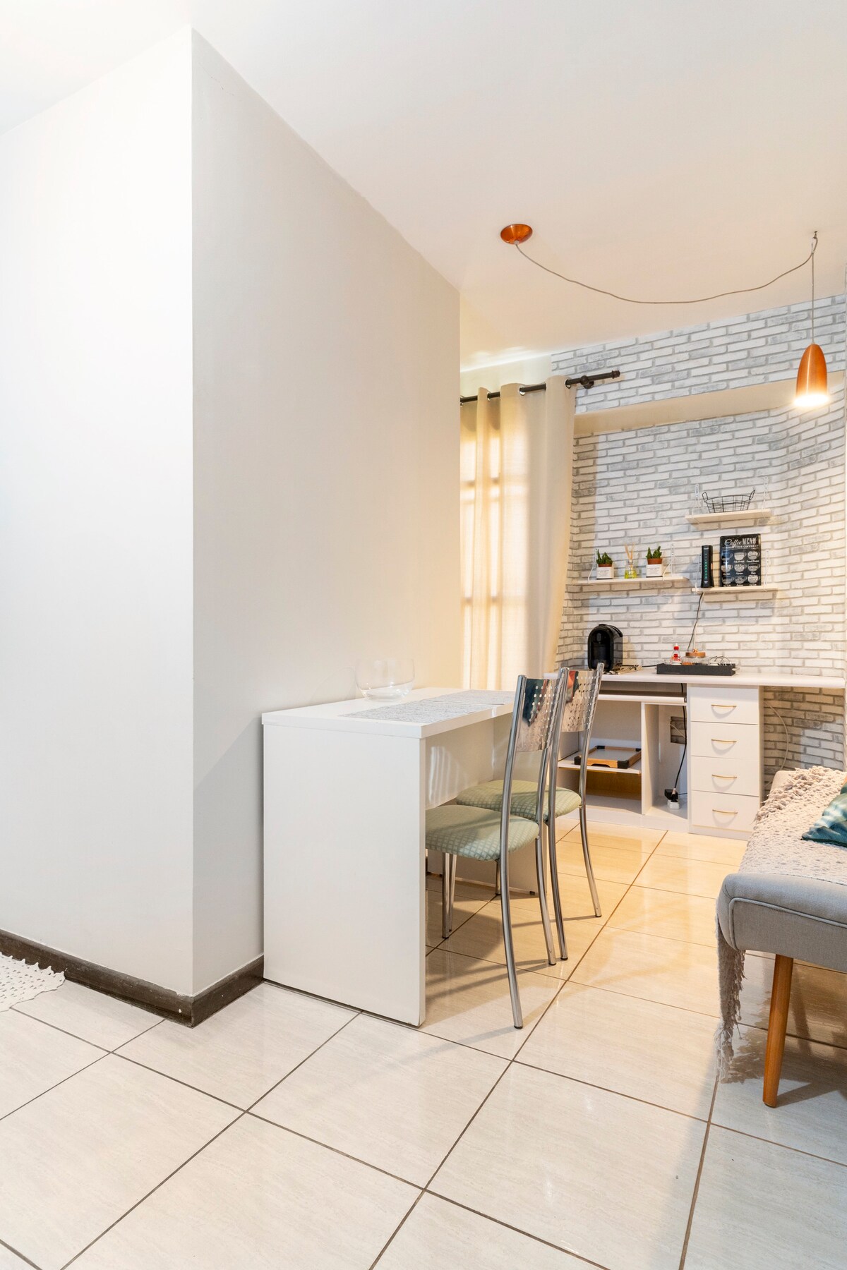 Abrace o estilo neste lugar tranquilo e bem localizado. A unidade "Praiana" é o seu lugar com estilo, tranquilidade e localização perfeita em Brasília. Está localizada no Plano Piloto e fica a poucos passos de Supermercado, restaurantes, farmácia 24h, padarias, salão, cafeterias. Disponibilizamos máquina lava e seca na unidade. É um PEQUENO espaço (18 m²) que possui tudo que você precisa. Cozinha equipada, secador de cabelo, ferro de passar roupa e uma decoração única. Decorada por design!