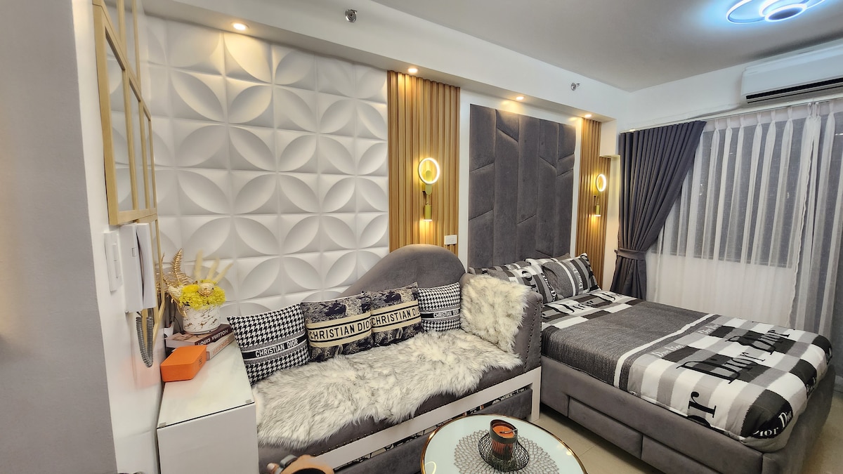 Despierta con las palmeras tropicales como tu vista desde tu cama a través de la puerta de vidrio. Cuenta con cama tamaño queen y colchón orto de calidad hotelera, almohadas y ropa de cama para una experiencia de lujo para dormir. Equipado con tus necesidades básicas de cocina pequeña. A 800 metros del centro comercial Mall of Asia, a 20 minutos del aeropuerto, teatros, Explanada, Con alfamart, Starbucks y restaurantes en la planta baja. La pileta es accesible por una tarifa adicional. Después de registrarte, saltá directamente desde tu balcón a la pileta y accedé fácilmente a tu unidad por una escalera exclusiva.