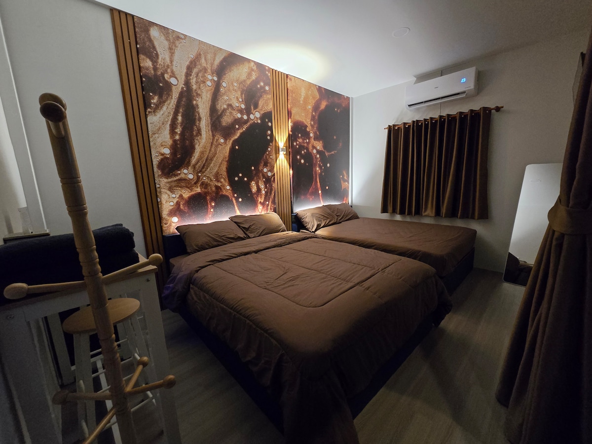 Habitación oculta en Bangsaen Deluxe Deluxe (con bañera, vista parcial al mar) - Piso 2-201 - Piso 3-301 - Cuarto piso-401 - Piso 5-501 “Términos de estadía” Check-in a las 2:00 p. m. Salida a las 11:30 a. m. Alójate para más de 2 personas. 500 baht por persona. 250 baht por niño (hasta 4 personas). 1 niño menor de 12 años/habitación (duerme con los padres) No hay estacionamiento/ascensor en la propiedad. Puedes estacionar frente a la propiedad como vía pública, estacionar en el área de la playa o dejar en un área de valet parking cercana (hay una tarifa).