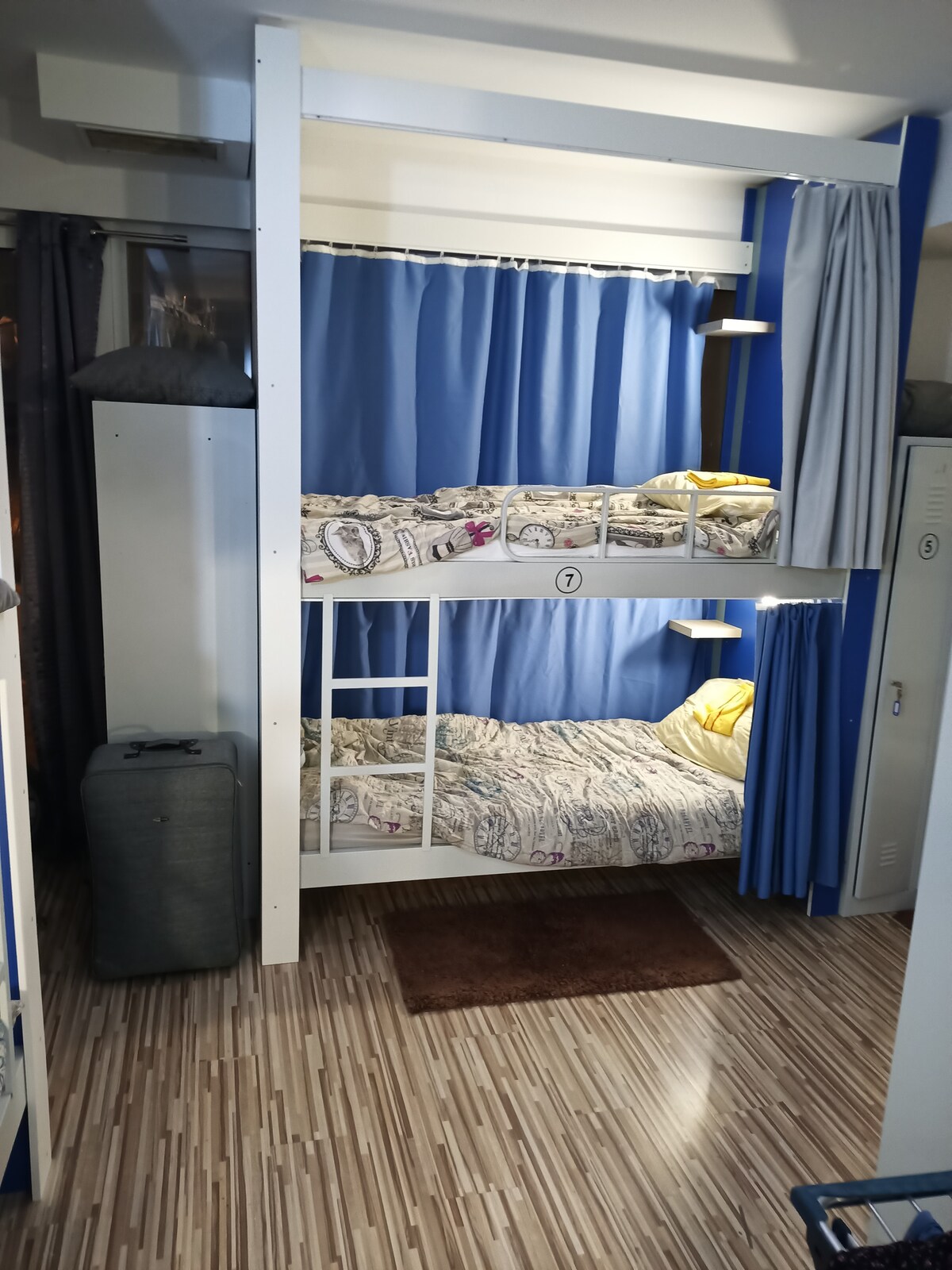 Acogedora habitación para 4, baño compartido, aire acondicionado, taquillas para sus pertenencias personales.