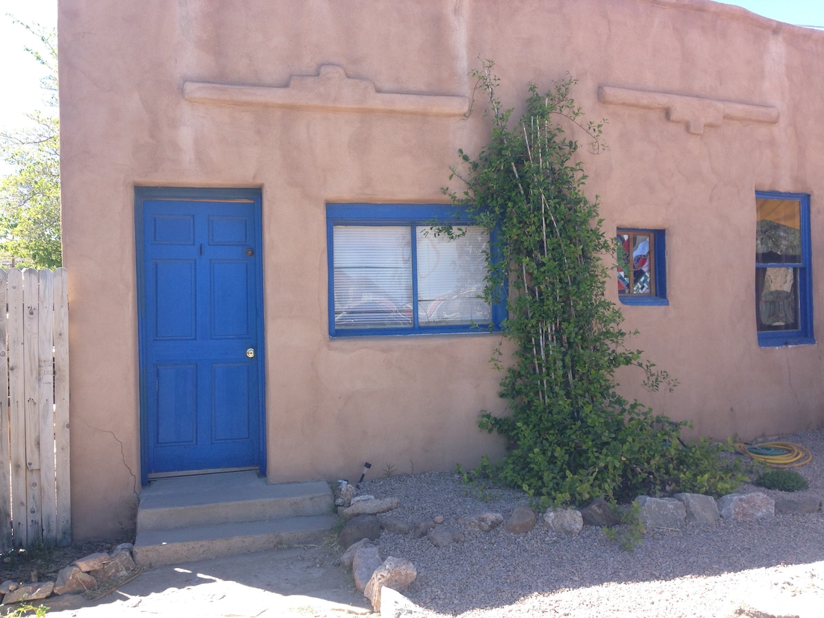 This cozy 1940s adobe casita with off-street parking is tucked into an intimate gated compound within walking distance of downtown TorC A queen-sized bed and ample seating invite you to read, visit, or contemplate the day's adventures A sun-drenched kitchen has ample dishes and cookware, a four-top gas stove, fridge, toaster oven, and microwave Outdoor seating areas provide a peaceful sanctuary to catch some sun or pet a friendly cat Hosts are on-site for guest’s needs