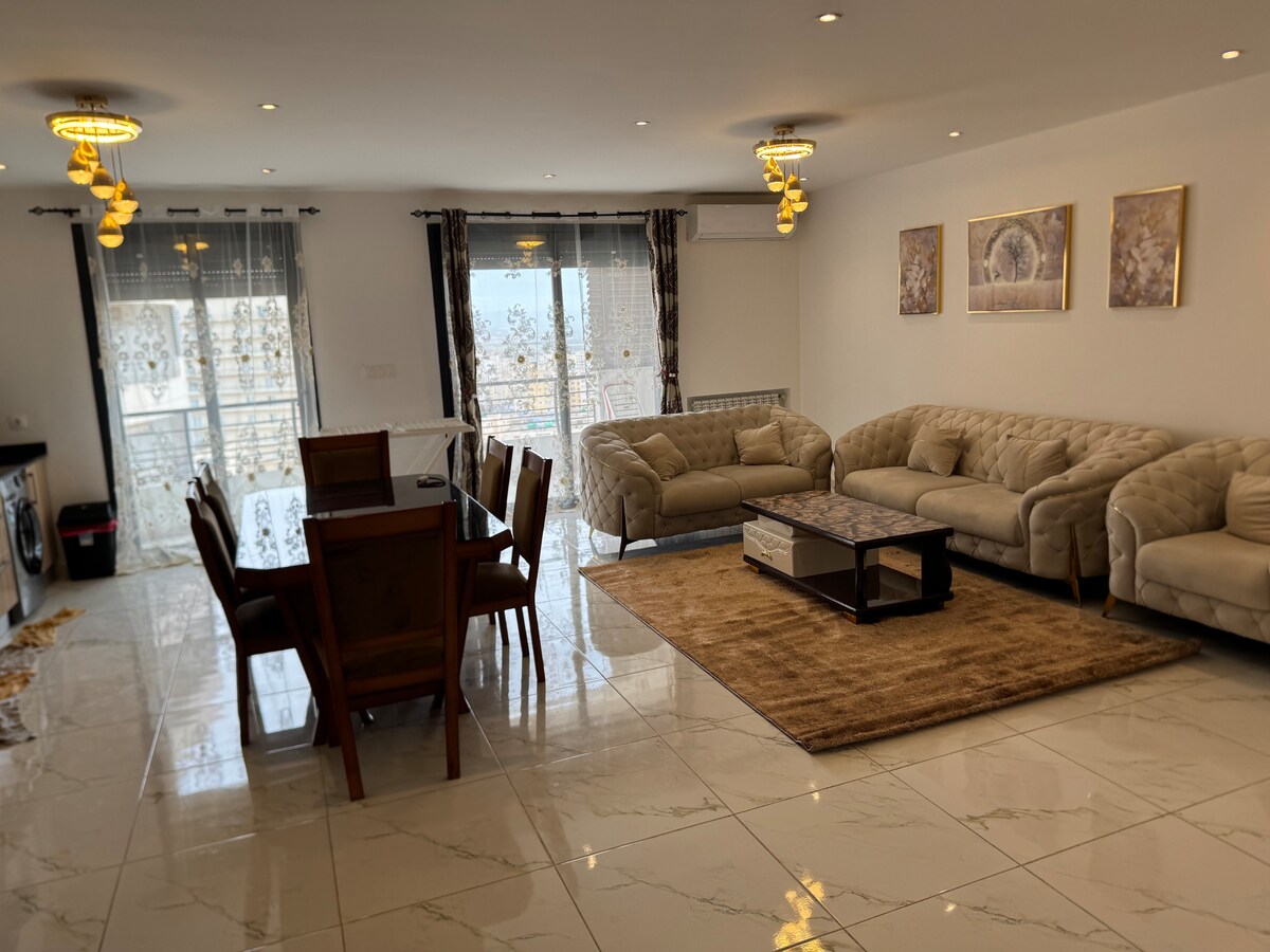☘️Veuillez lire tt attentivement s’il vous plaît☘️ Détendez-vous dans ce logement calme et élégant. Un T2 open space très bien situé dans le nouveau centre ville d'Oran avec plusieurs commerces et restaurants à proximité. Idéal pour vos séjours en famille ou avec des amis. 11 etage 2 assansseur clim central chauffage central 💎Immeuble doté d’un 💎 Gym-Piscine : non inclus dans le sejour Accueil à l’aéroport avec un chauffeur arrivés/départ Frais supplément:Femme de menage a la demande