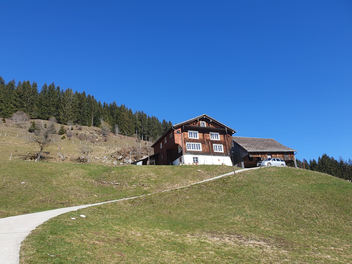 Hermoso departamento de 1,5 habitaciones en una granja con vistas al lago y a la montaña. En verano, es un punto de partida ideal para una caminata agradable, un paseo en bicicleta o para relajarse en la terraza. En invierno, se puede acceder a la pista de esquí de fondo justo afuera de la puerta principal. La estación de esquí Hoch-Ybrig también está a unos 12 minutos en auto o a 21 minutos en autobús. Incluye espacio para guardar bicicletas y esquís.