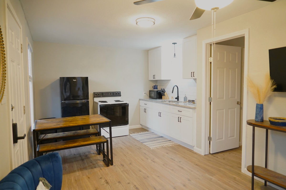 Settle into our cozy private studio located behind our main residence in a quiet historic neighborhood. The space includes a comfortable queen bed, a sofa bed best suited for one small guest or a child, a 46” TV with streaming apps, and a compact kitchenette for light meals and coffee. This studio is best suited for solo travelers or couples seeking a calm, comfortable place to stay close to downtown and local restaurants. Designed for quiet, respectful stays.
