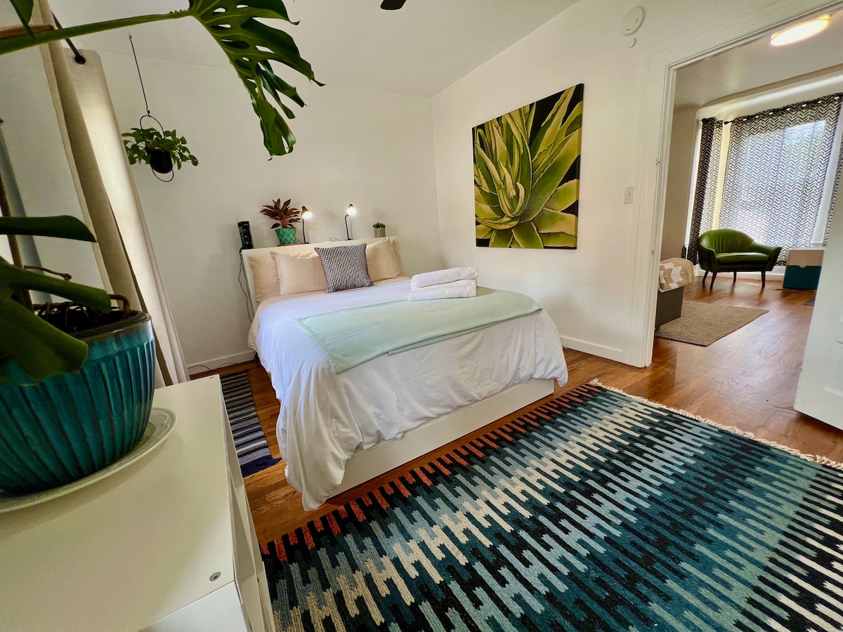 ¡Acogedor estudio a poca distancia a pie de Valley Fair y Santana Row! Este encantador espacio ofrece comodidad y privacidad con su entrada privada. Ideal para personas que viajan solas, profesionales o parejas, cuenta con un dormitorio con dos camas. La proximidad al Hospital O'Connor lo hace perfecto para aquellos que necesitan alojamiento cerca de instalaciones médicas. El aparcamiento en las instalaciones garantiza comodidad y el baño privado completo adjunto garantiza comodidad durante tu estancia.