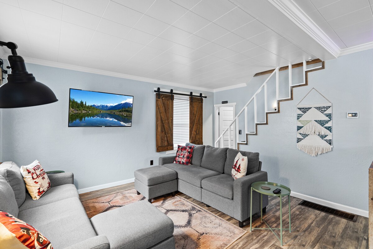 Situada en las faldas del fabuloso Silver Valley, Grandma's Cozy Farmhouse es la granja original de una antigua granja lechera de 100 acres. La granja está situada en un hermoso terreno detrás de una puerta automática acompañada por el antiguo granero de ordeño, edificios exteriores y otra residencia cercana. Grandma's tiene unas vistas increíbles de Frost Peak, Bald Mountain («Baldy» para los lugareños) y muchos otros. Sea la estación que sea, ¡estas escarpadas montañas del norte de Idaho brillan con asombro y aventura!