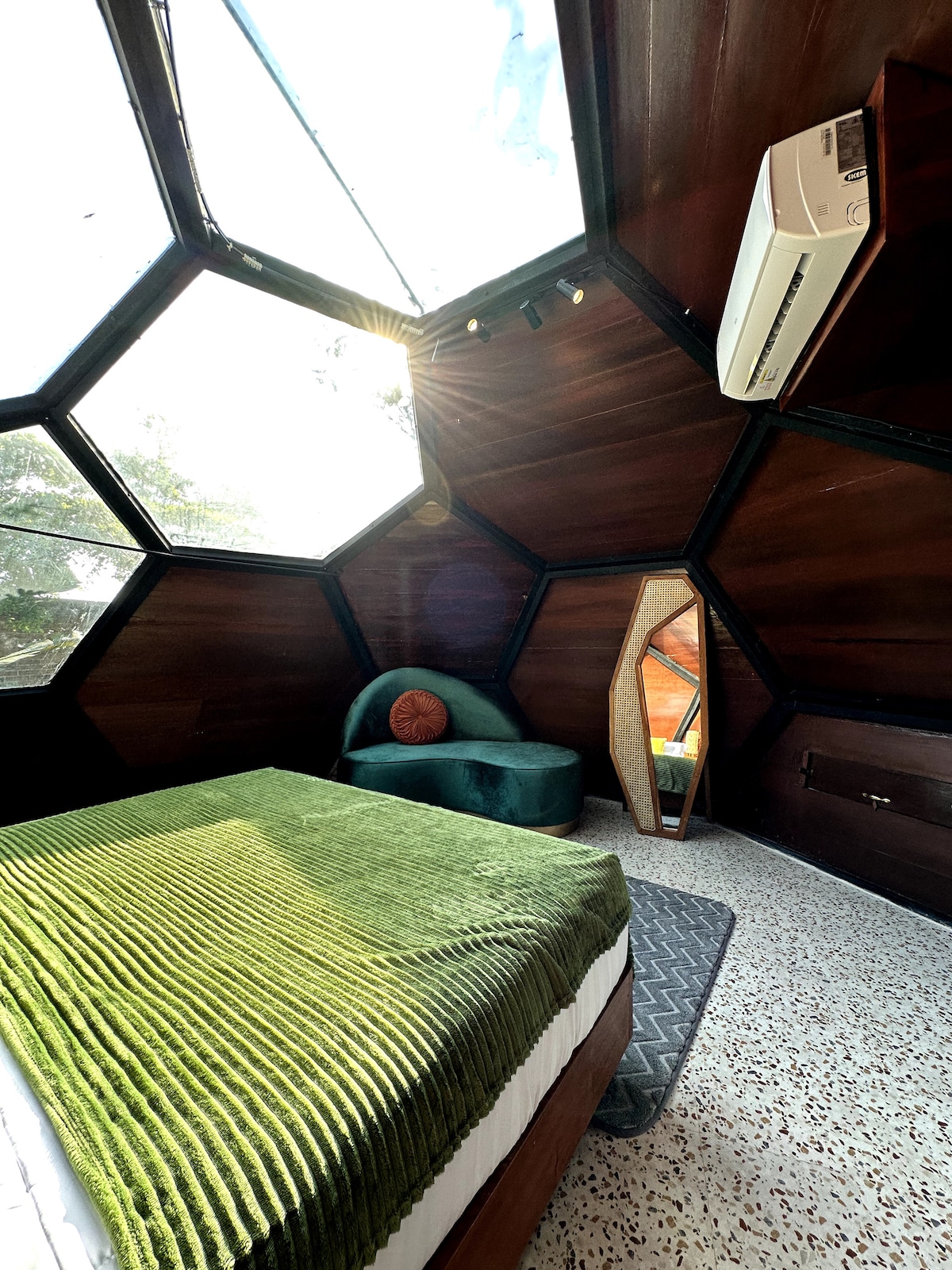 Discover a one-of-a-kind stay that blends modern architecture with natural beauty. Our dome and cabin, featuring open glass designs inspired by a honeycomb, provide breathtaking views of lush green rice fields and the majestic Mount Merapi right from your room. Located just 10 minutes from Prambanan Temple and Plaosan Temple, this accommodation offers the perfect base for exploring Yogyakarta’s rich cultural heritage.