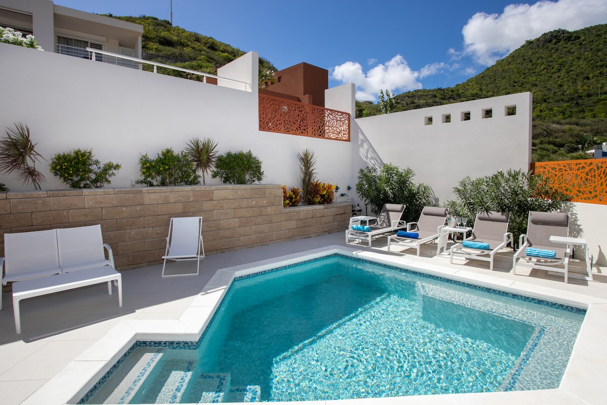¡Te doy la bienvenida a Secret View! Un refugio elegante e íntimo con una piscina privada y una espaciosa terraza ubicada directamente en la laguna. Diseñado para parejas que buscan tranquilidad, romance y discreción, a pocos minutos de la vibrante Maho con sus restaurantes, bares y casinos, y Mullet Bay Beach, una de las mejores playas de la isla con impresionantes aguas turquesas. Aparcamiento privado gratuito. Esta joya escondida es el marco perfecto para momentos inolvidables en pareja.