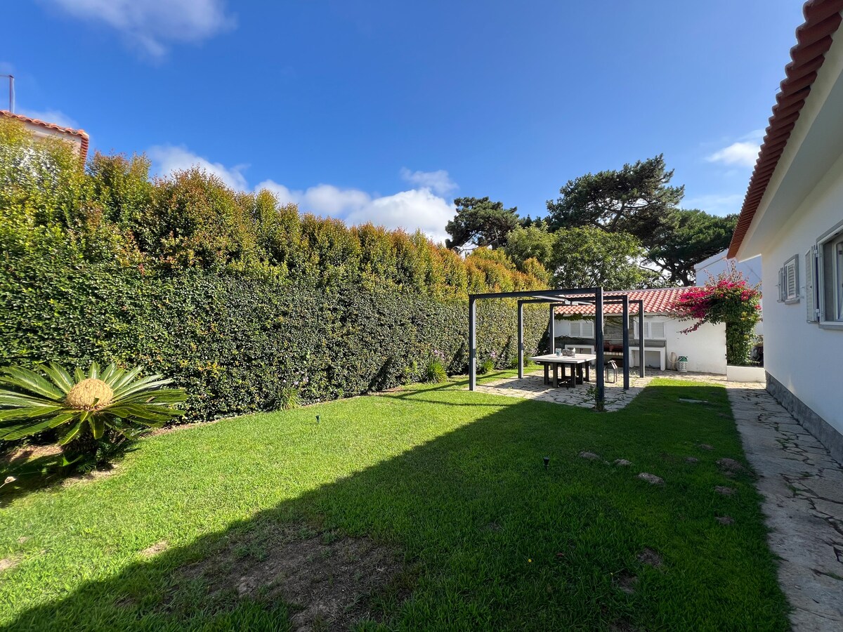 Welcome to Villa Alba! Located in Sintra National Park, Villa Alba is just seconds away from the famous white beach Praia Grande. This beautiful villa immediately encourages guests to relax. With sliding glass doors to the garden and swimming pool, a stay here won’t leave you disappointed. The living area has a perfect relationship with the garden. Just beside is the dining area, featuring a modern glass dining table with leather chairs.